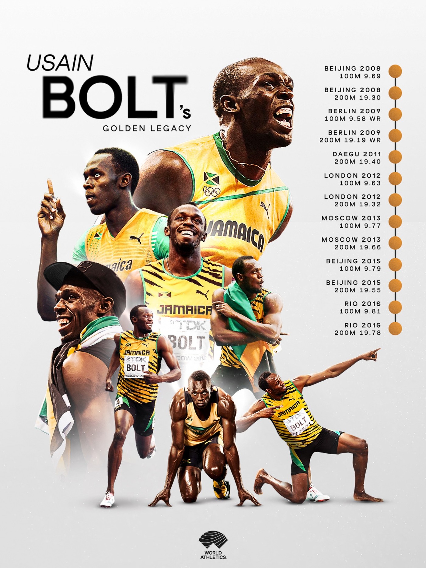 博尔特 16 岁在世界青年田径锦标赛上获得 200 米冠军后,PUMA 便签下了这位潜力新星。