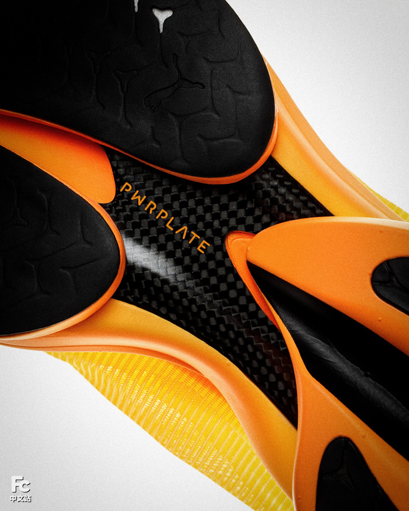 双密度中底、全长碳纤维 PWRPLATE 脊柱结构与中空后跟几何形态,融合缓震、刚性与轻量化,持续提供精英级响应。