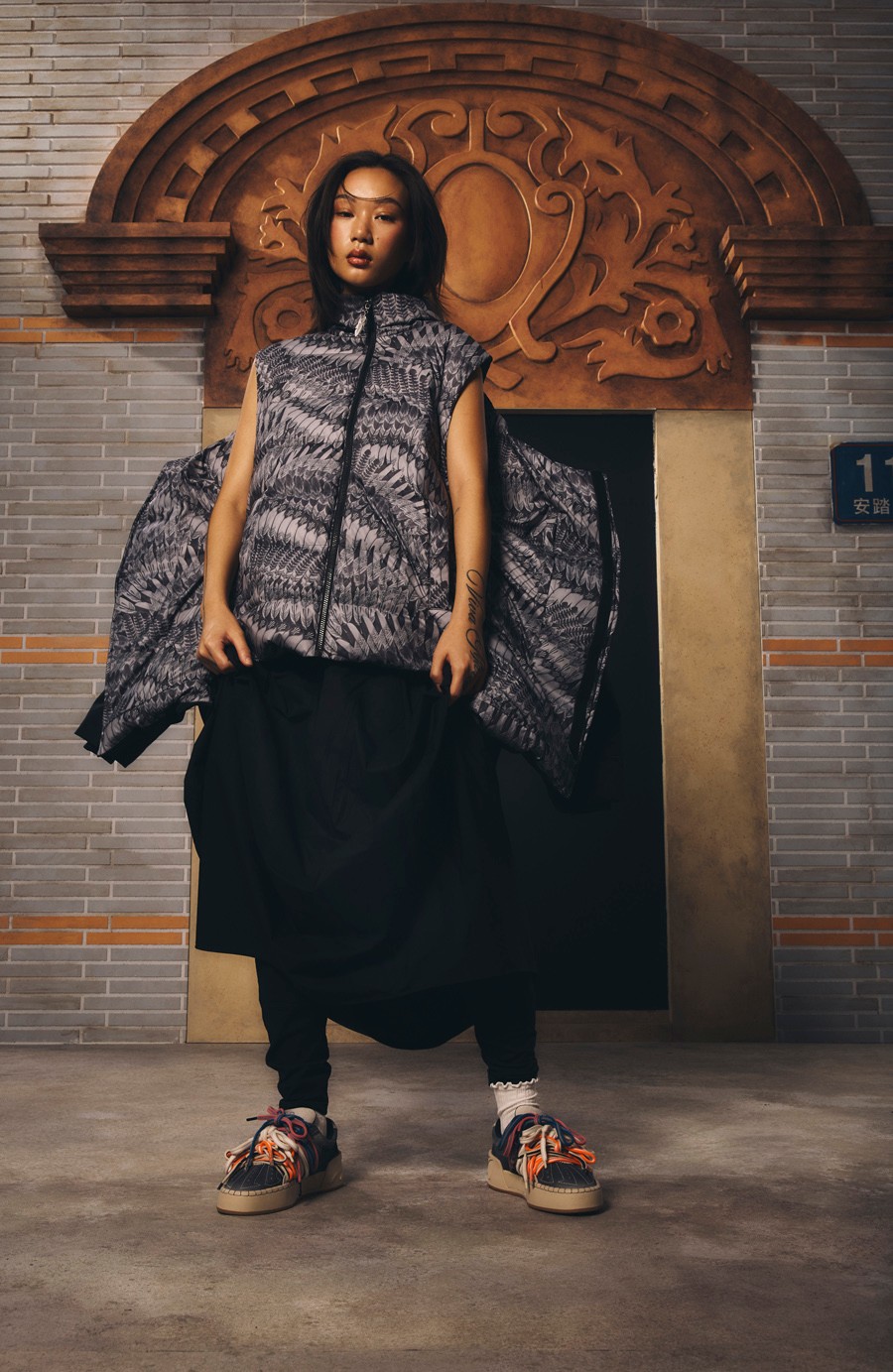 HÉLÀ Season 2 服装系列涵盖多款宽松廓形外套、模块化针织层叠单品及功能长裤等,通过精准而流畅的剪裁和富有弹性的面料,既兼具动态穿着功能与日常造型时尚需求。
