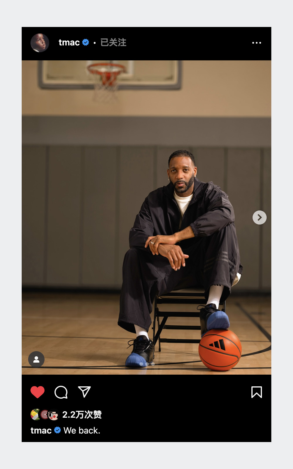 直到这两天,麦迪(@tmac)和 adidas 篮球(@adidasbasketball)的官方账号共同发文,宣告双方的合作关系再度回归。