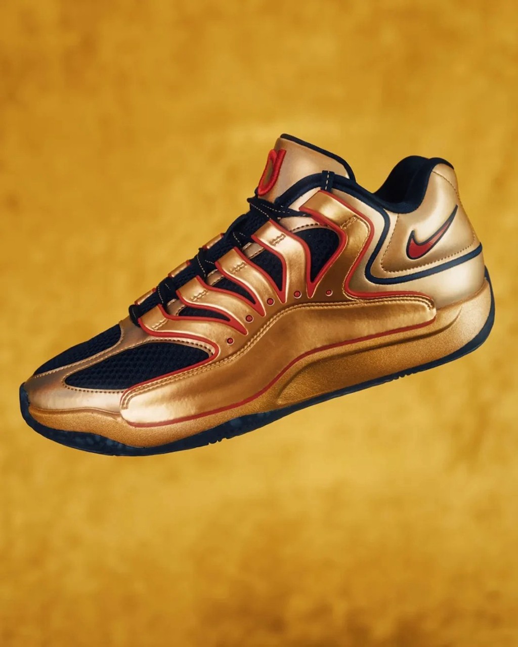 今早,Nike 为巴黎奥运男篮成员詹姆斯、杜兰特、布克三人打造的夺金大套装,终于在美国率先市售,限量 1200 套。