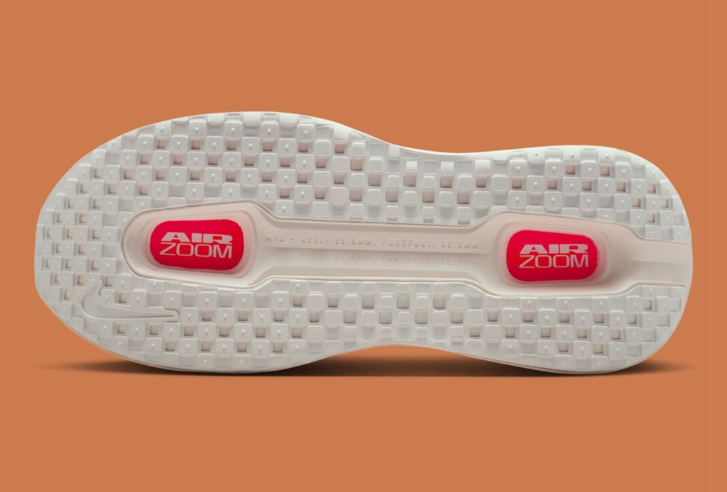 中底科技可谓豪华,搭载 ZoomX 缓震,前掌与后跟嵌入超大块外露式 Air Zoom 气垫单元,肉眼可见的软弹。