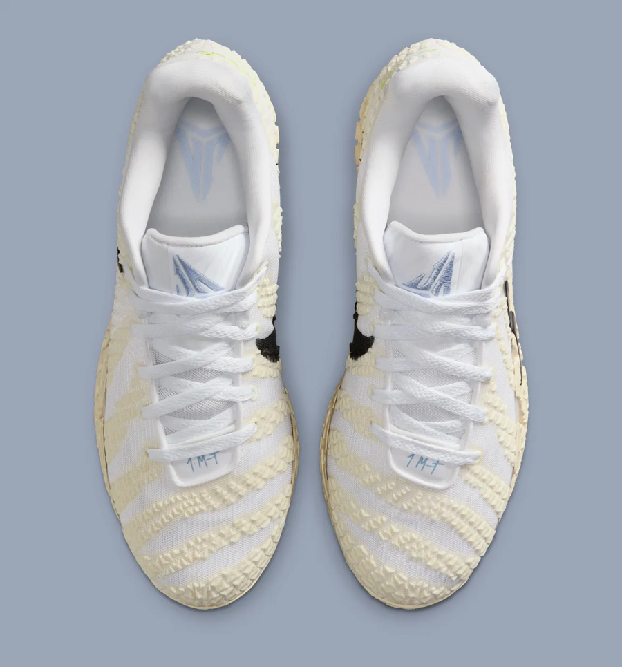 三代独有的立体鞋面,通过奶白色示人,与此前 Kobe 6 Protro 「全明星 2.0」的感觉如出一辙。