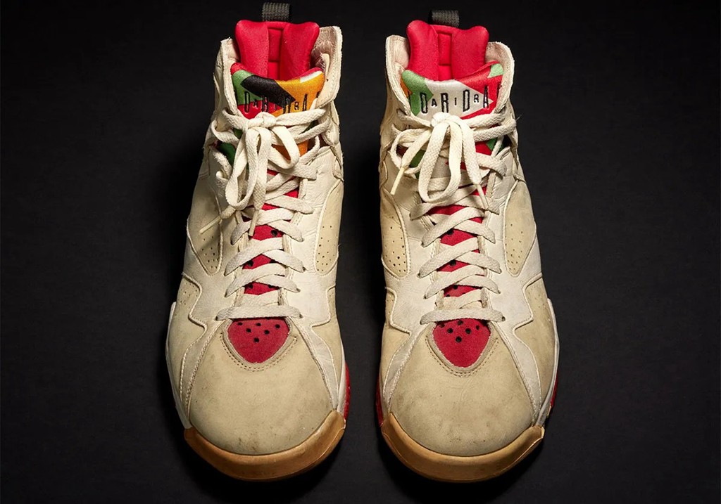 这双 Air Jordan 7 就是 1992 年 3 月 31 日乔丹比赛亲穿。