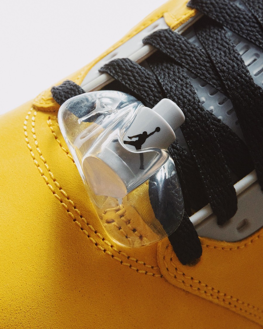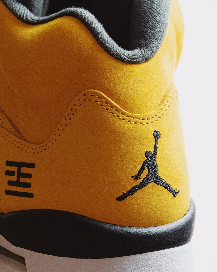 鲜亮的黄色装扮搭配后跟源自涩谷的图腾 Logo,在一众 AJ5 中显得尤为特别。