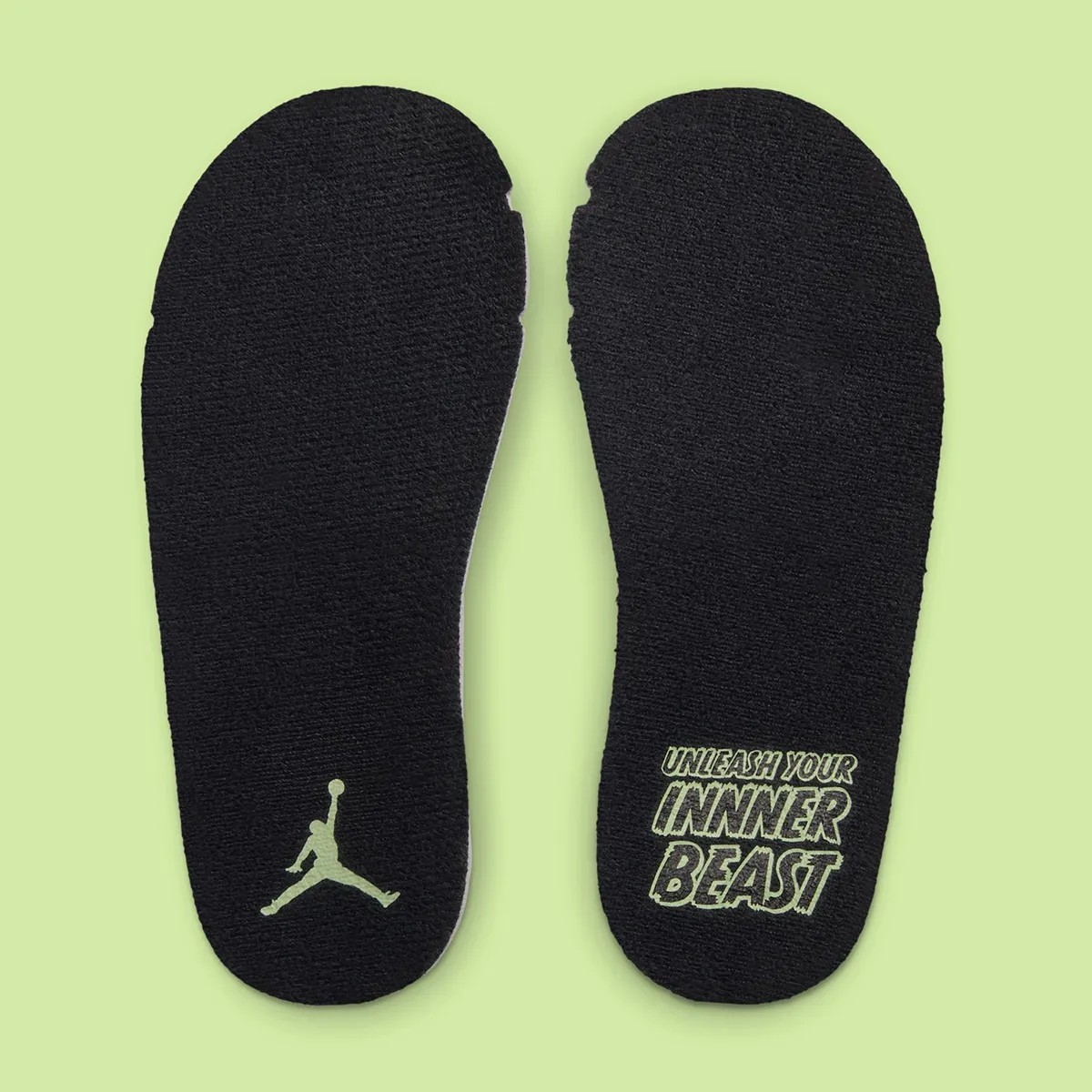 特殊设计像是,鞋帮 Jumpman Logo 注入抓痕设定,右侧鞋垫上写着 “释放你内心的野兽”。
