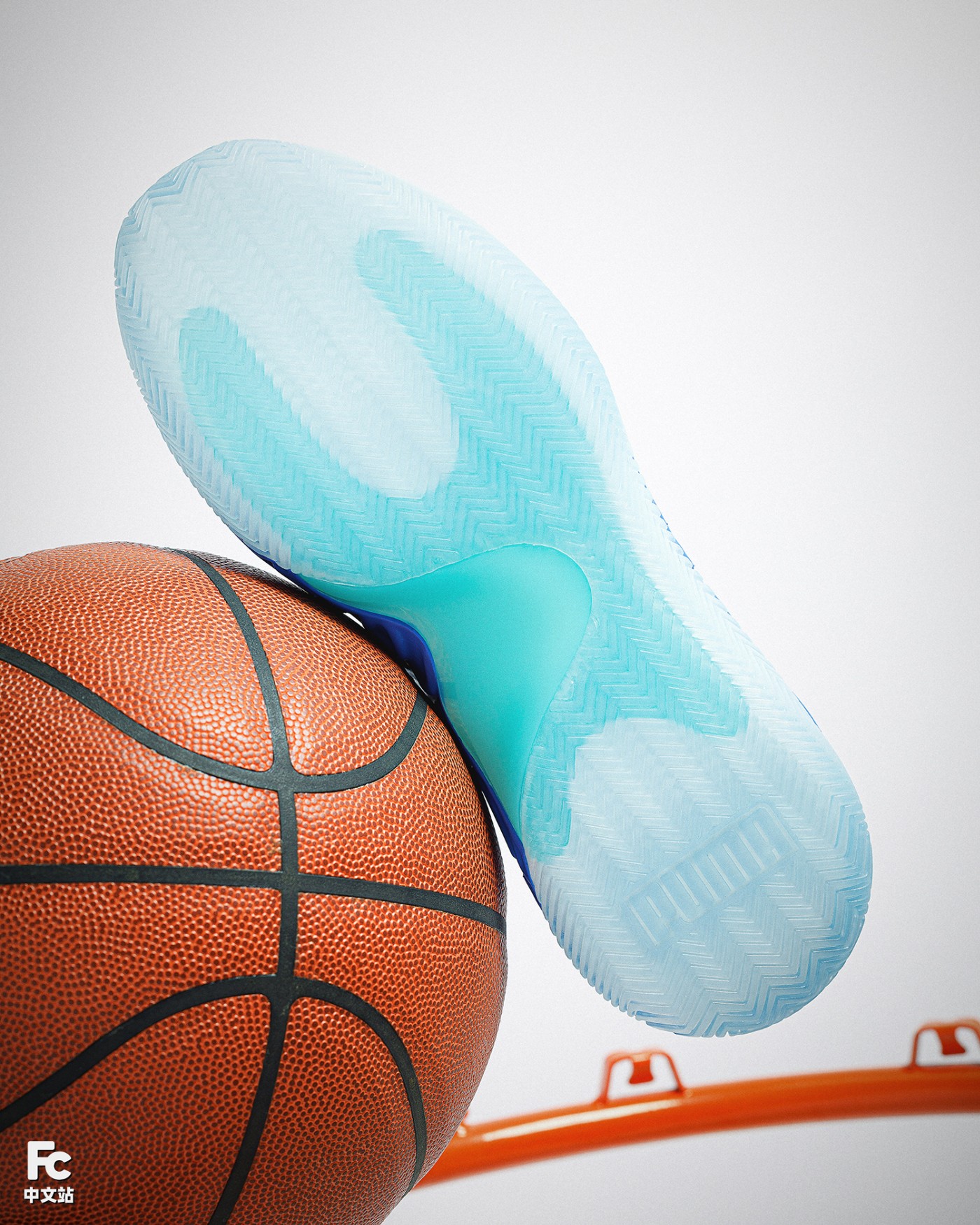半透明的水晶大底结合了大面积的抗扭片,使其可以轻松应对激烈的球场对抗。
