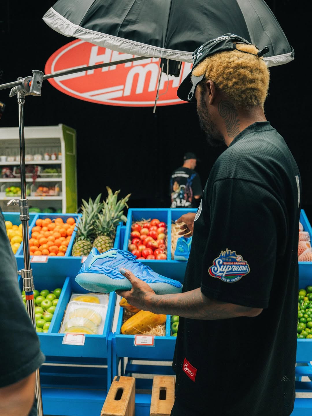 为了给新鞋预热,他本人亲自上阵,化身超市店员参演了广告宣传片,与设计师 Salehe Bembury 亲临 Hali Mart(哈利超市)快闪店活动。