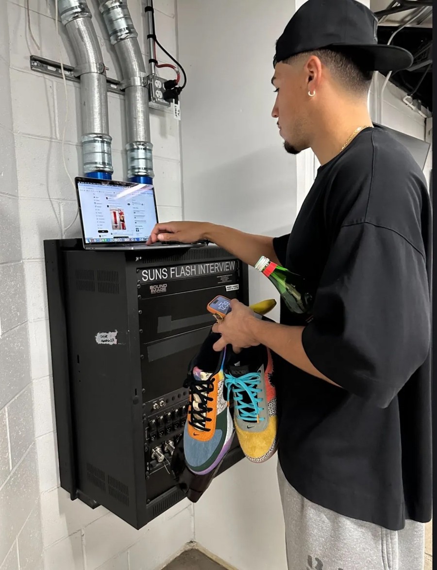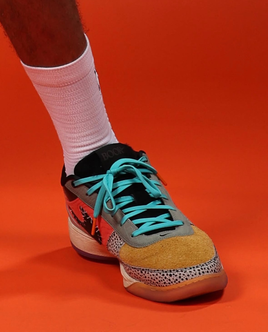 而在此之前,布克本人在太阳媒体日上脚的这双 Nike Book 1 “What The Book”,无疑对初代签名鞋做了一个最完美的收尾!