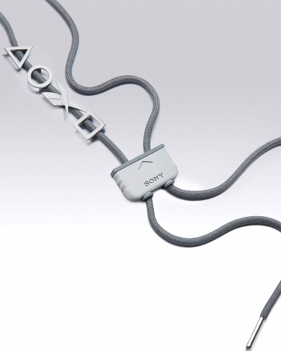 配色方面,选自初代 PlayStation® 经典的浅灰装扮,并在鞋身点缀有 PS 的经典 Logo、手柄插槽和标志性的按键几何元素。