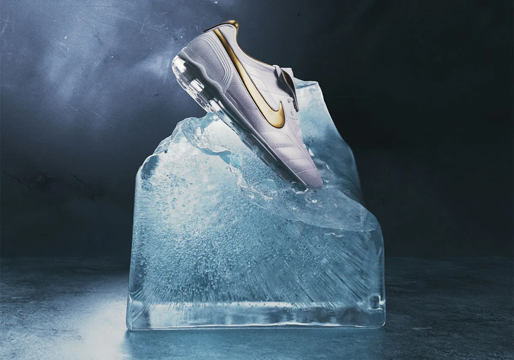 而今年夏天 Nike 发布了经典足球鞋「水星」和「传奇」的 Cryoshot 版本,外底设定与这双展品简直如出一辙,这么看来,似乎灵感源头也就清晰了。