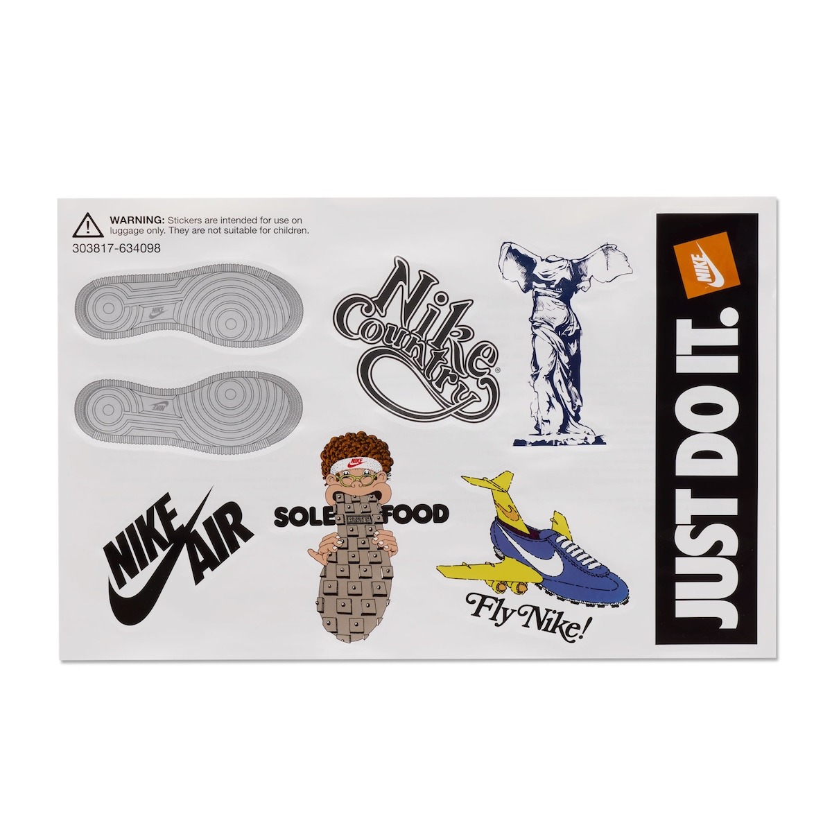 还附送了多张 Nike 主题的贴纸,在行李箱上贴满贴画,也是流行的玩法。