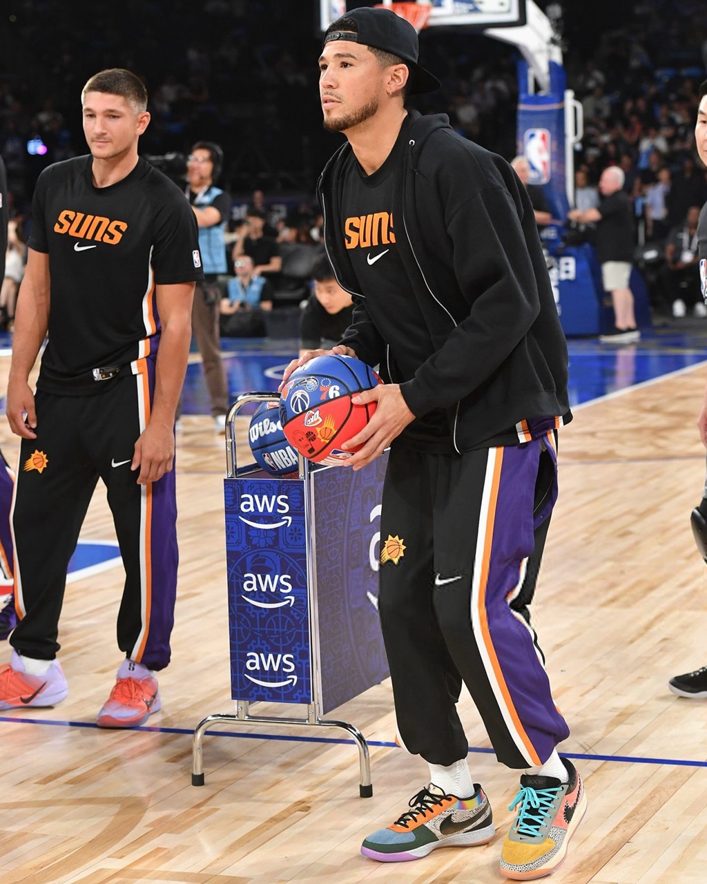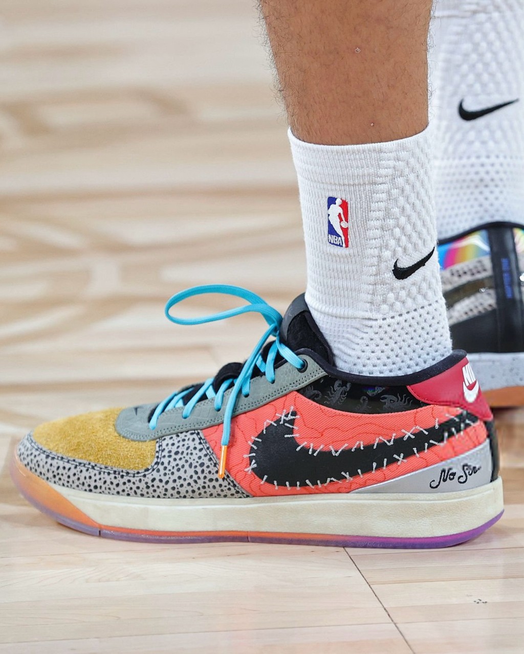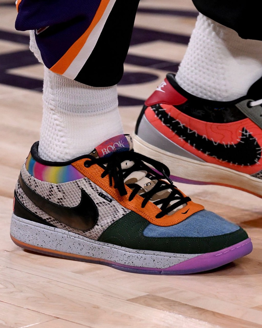 当然,作为球鞋玩家,场上的战靴也是值得关注的,比如布克脚上的 What The Book 1,相当吸睛。