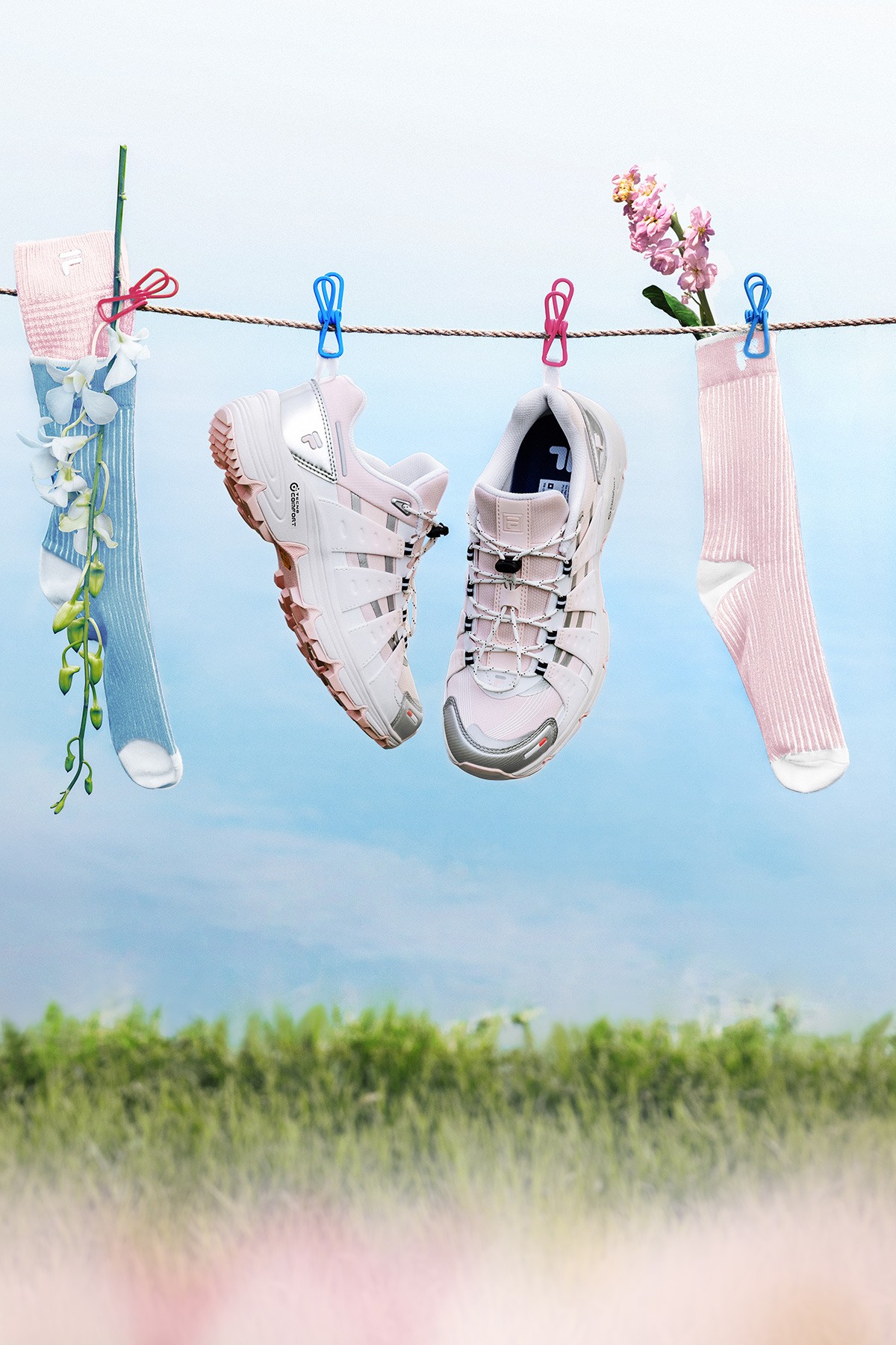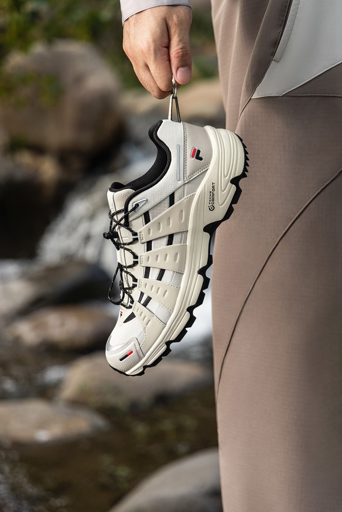 这双鞋从 FILA 经典鞋款中汲取灵感,巧妙融合 FILA 经典尖刃元素的同时,又以独特的鞋面结构完成强化,以提供户外运动所需要的支撑、包裹性能。