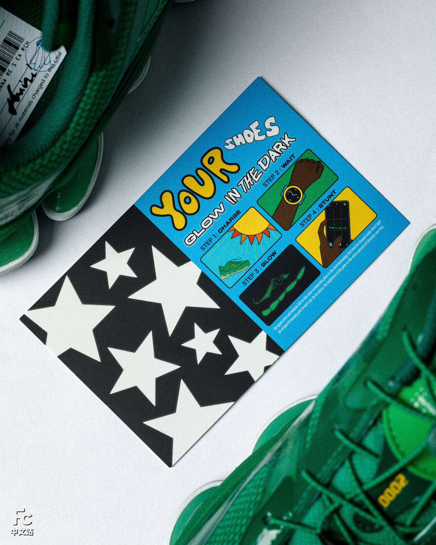 并且夜光覆盖面积相当大,从鞋面到中底都散发着绿光。