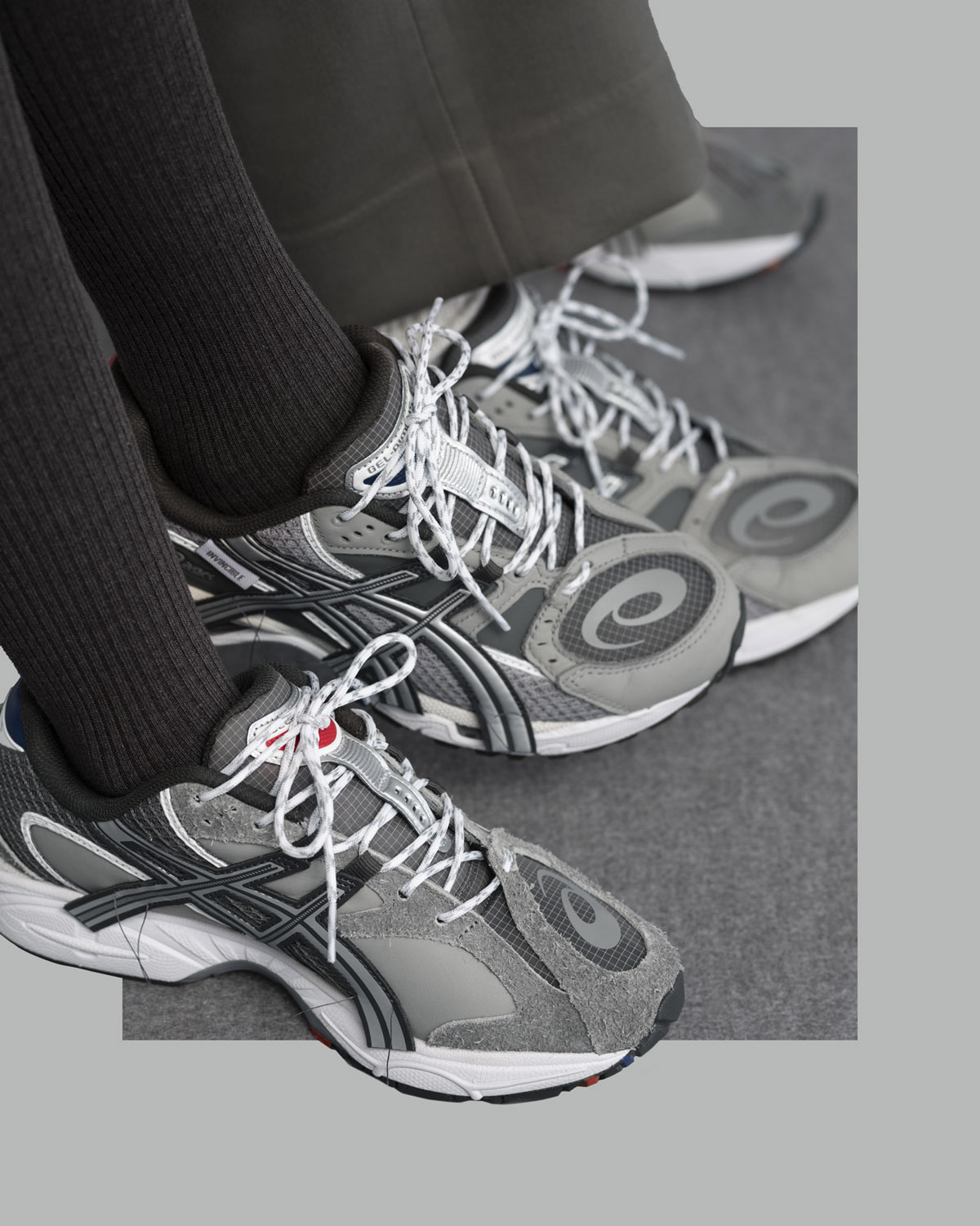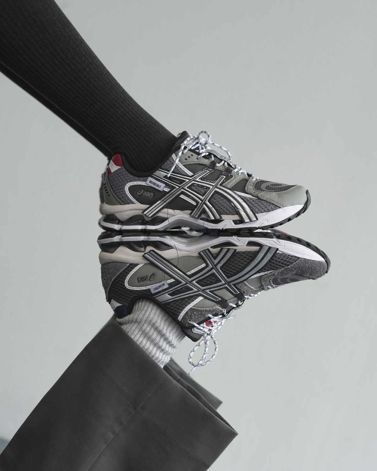 今年正值双方合作十周年,INVINCIBLE 选择现代鞋型 GEL-NIMBUS 10.1 为蓝本,重塑十年前经典 GEL-LYTE III。