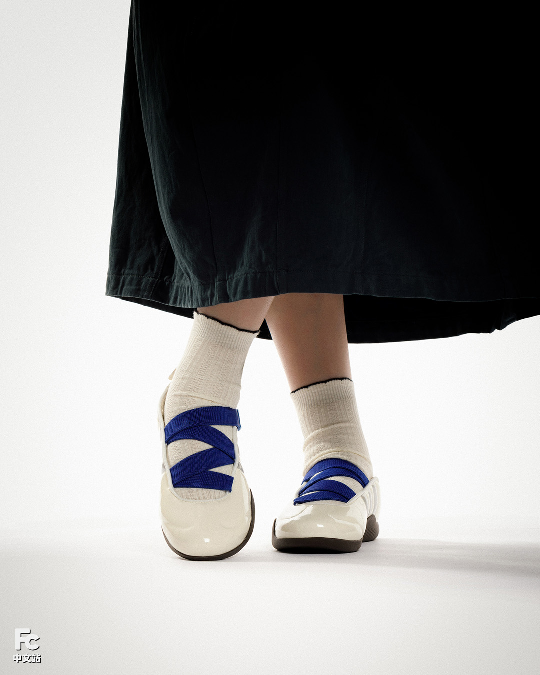 最大的创新在于胡颖琪将鞋款与优雅的芭蕾舞结合,带来全新的绑带系统。