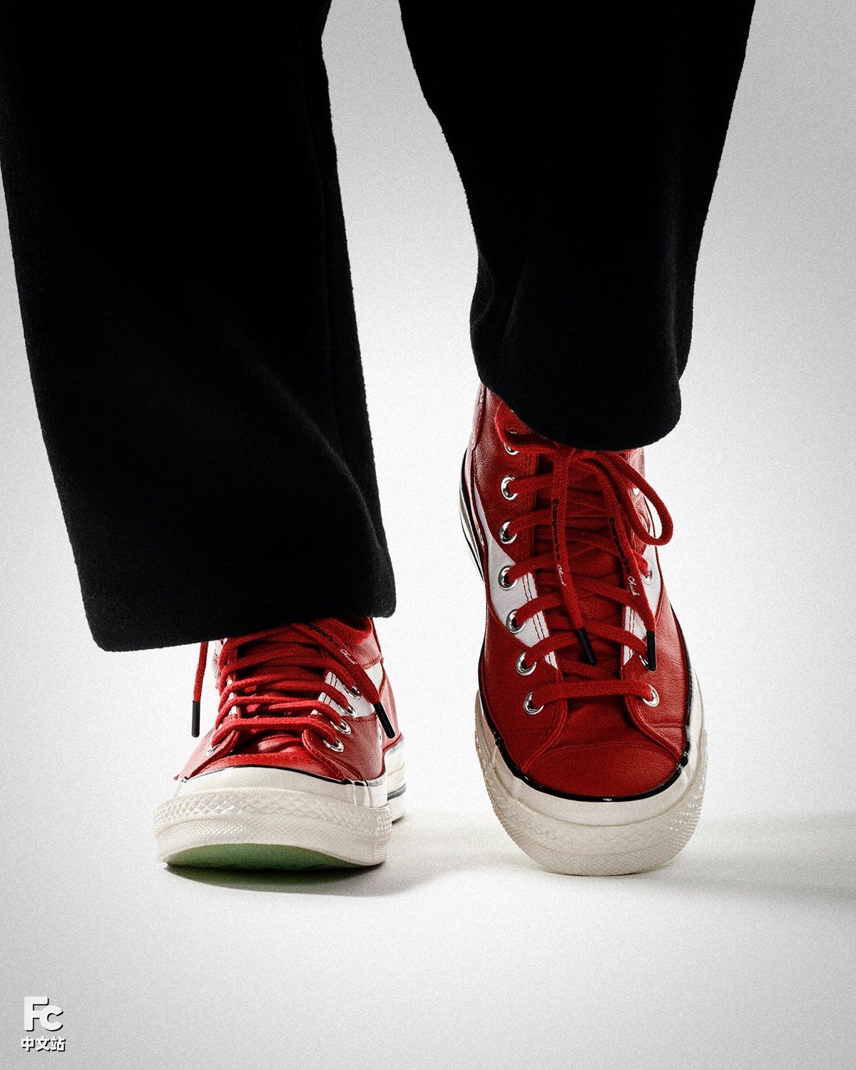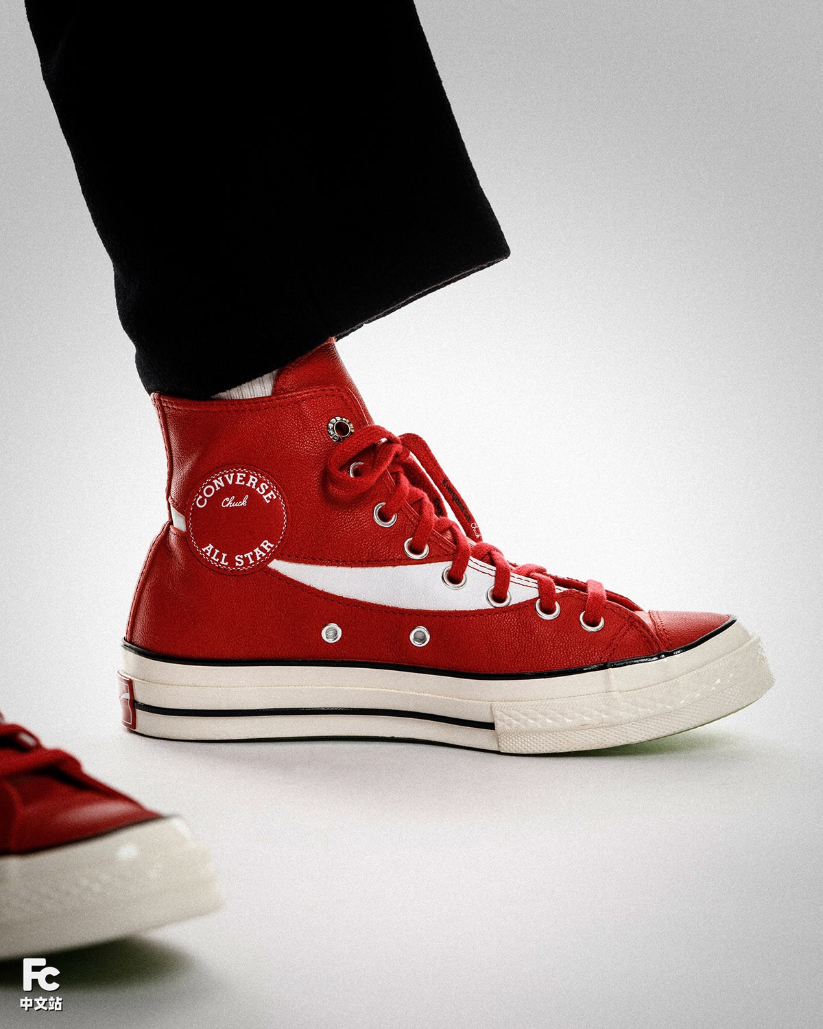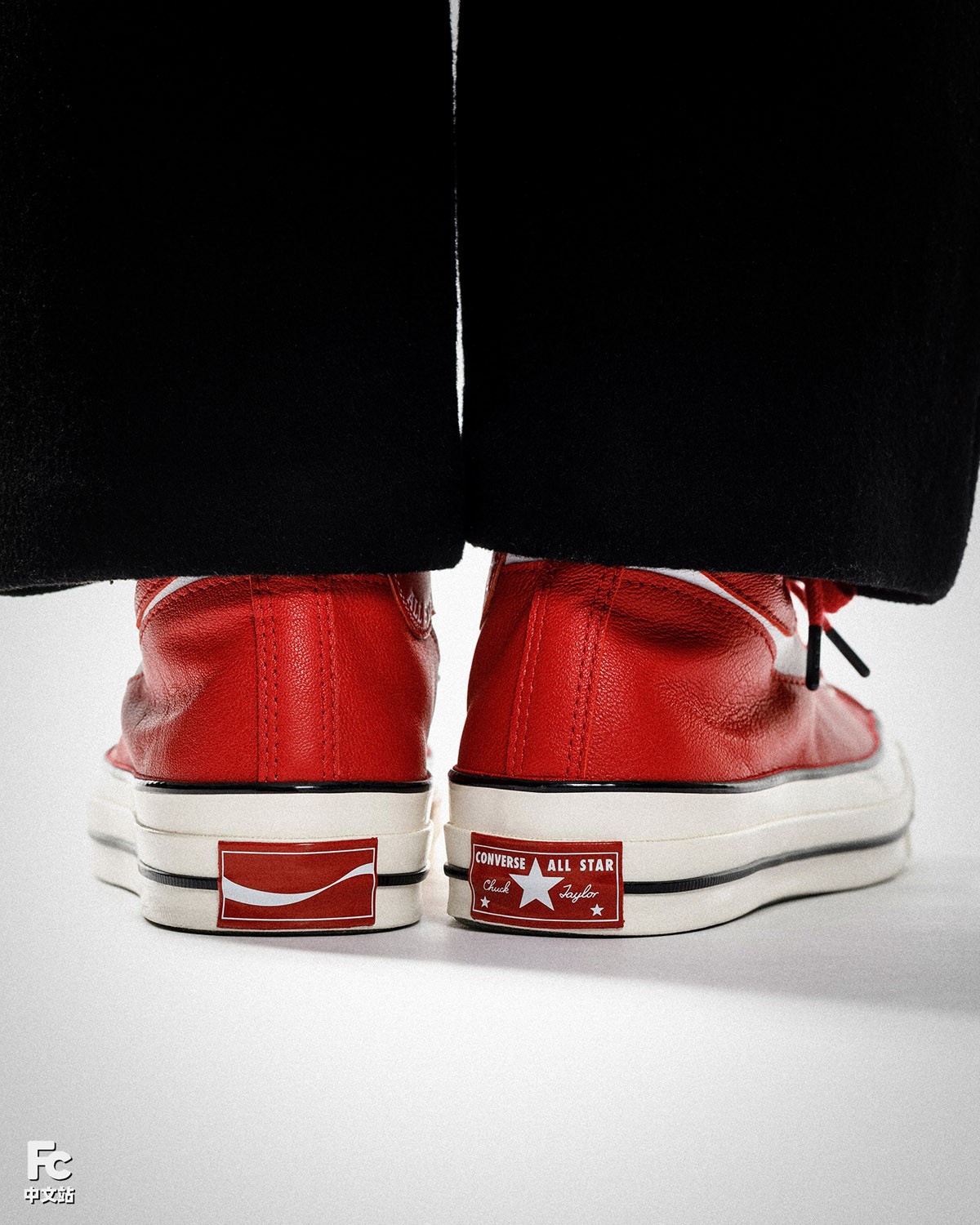 这双红色的可口可乐 x Converse Chuck 70 Hi 采用了优质牛皮革打造鞋身,既有非常不错的质感,也很适宜秋冬时节的穿着。