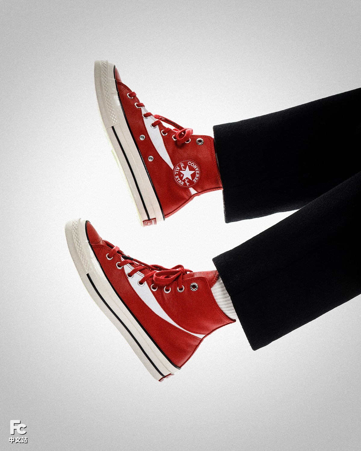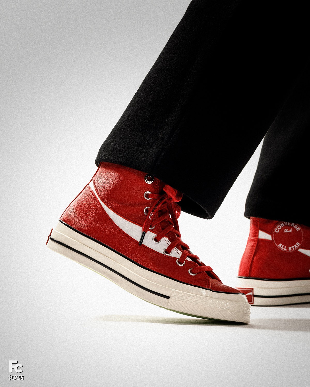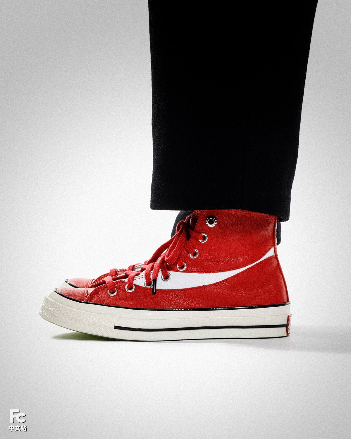 这双红色的可口可乐 x Converse Chuck 70 Hi 采用了优质牛皮革打造鞋身,既有非常不错的质感,也很适宜秋冬时节的穿着。