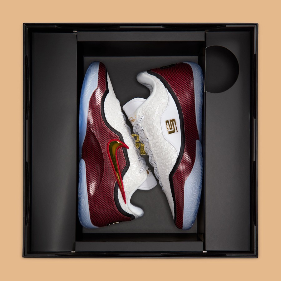 整双鞋承袭初代 Air Zoom Generation “1st Game”标志性的构色方案,并带回早期的 LBJ 个人 Logo。