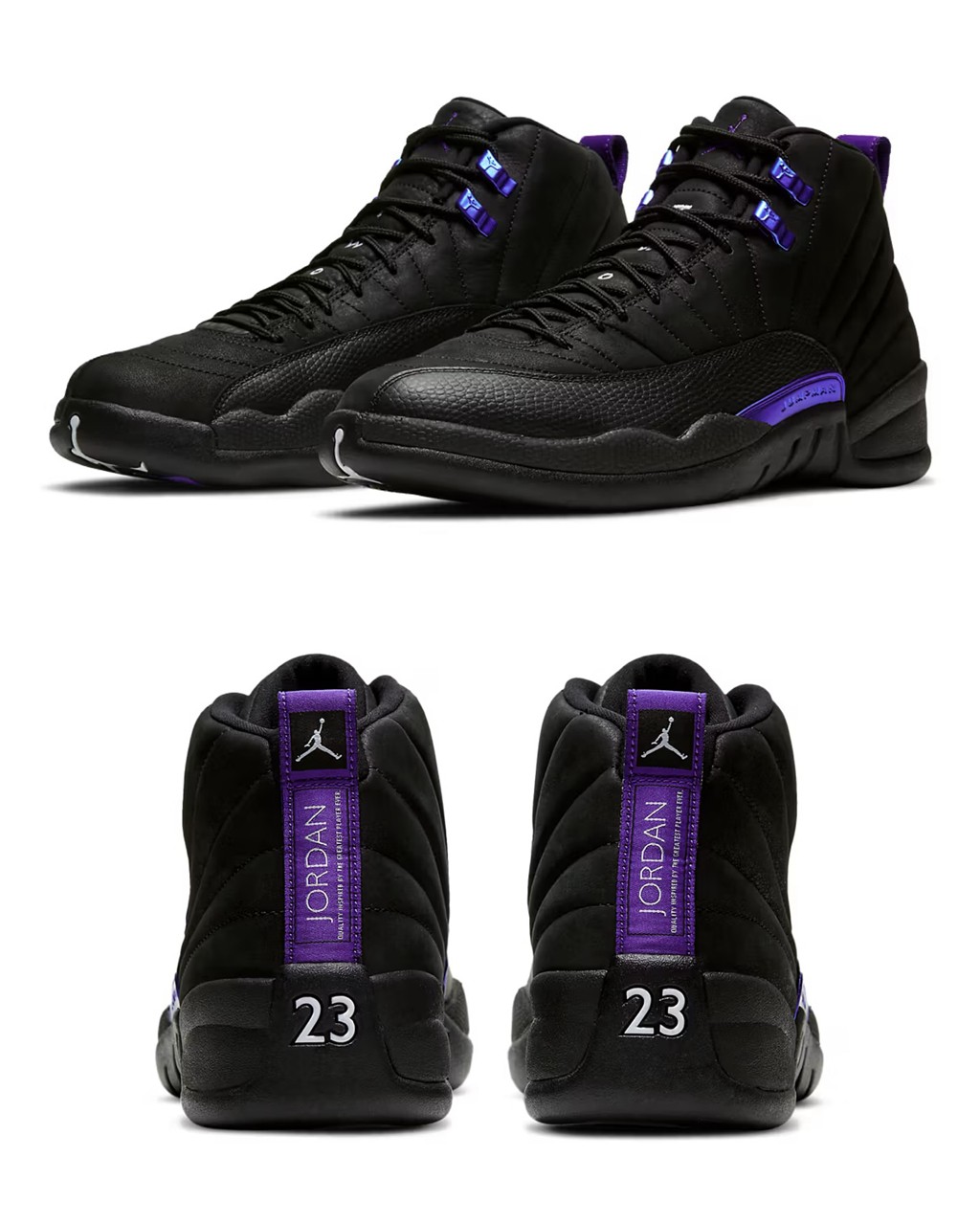 这双 AJ12 推出于 2020 年,凭借着黑紫搭配而被称作 “Dark Concord”。