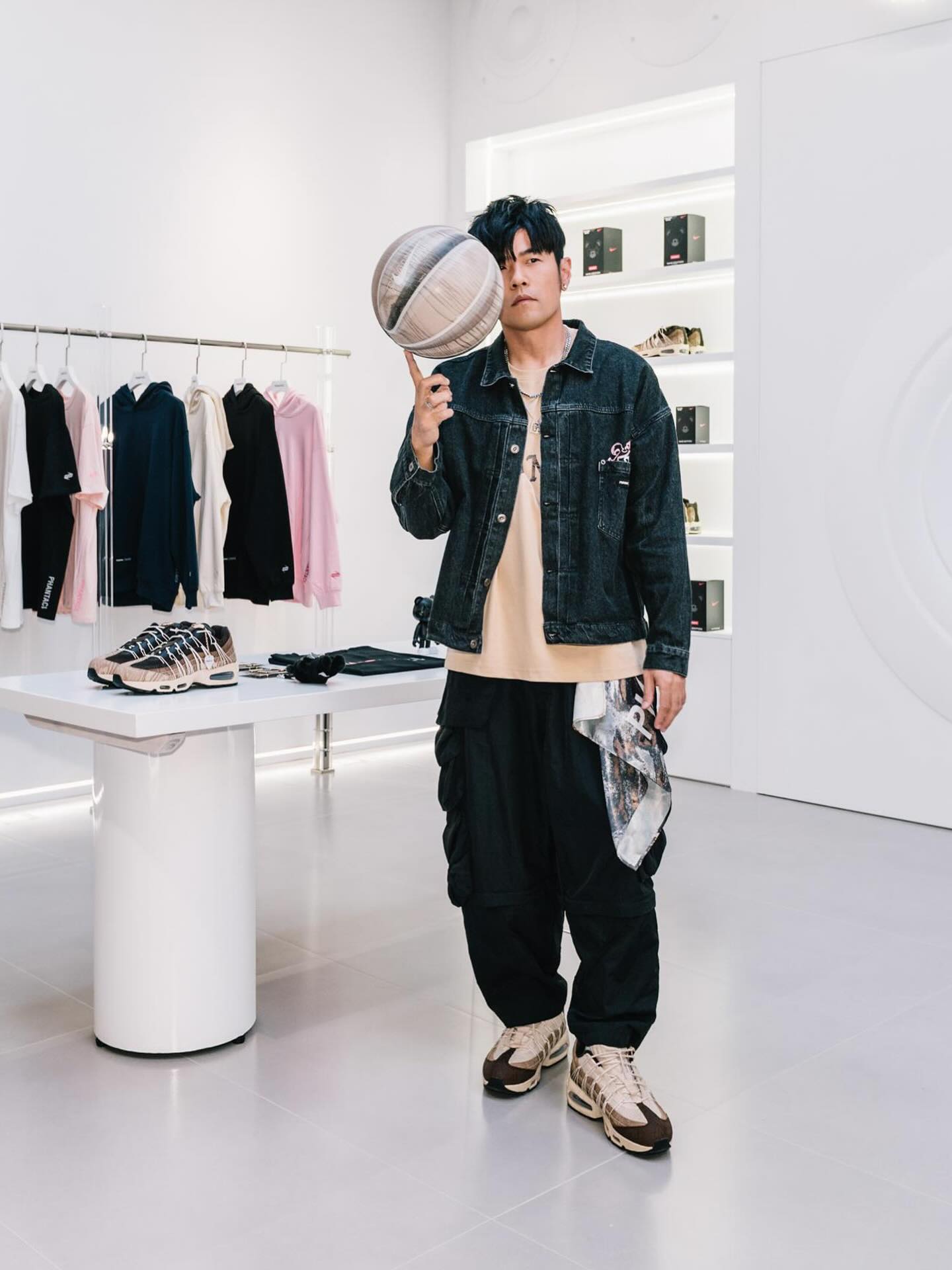 网球大师周杰伦脚穿 PHANTACI x Air Max 95 跟老婆一起拍摄了第一套造型,一眼活力满满的夏日风。