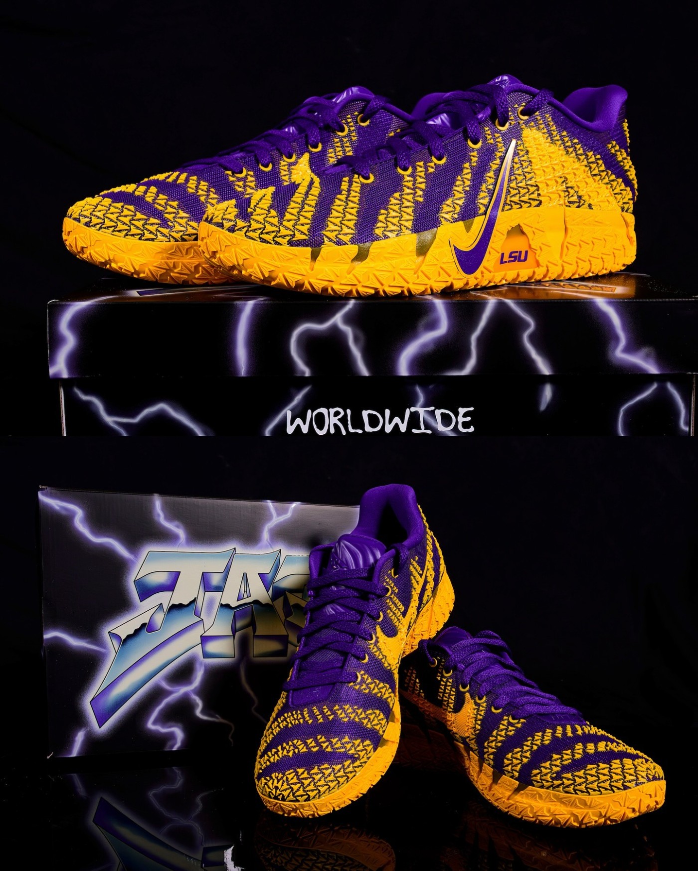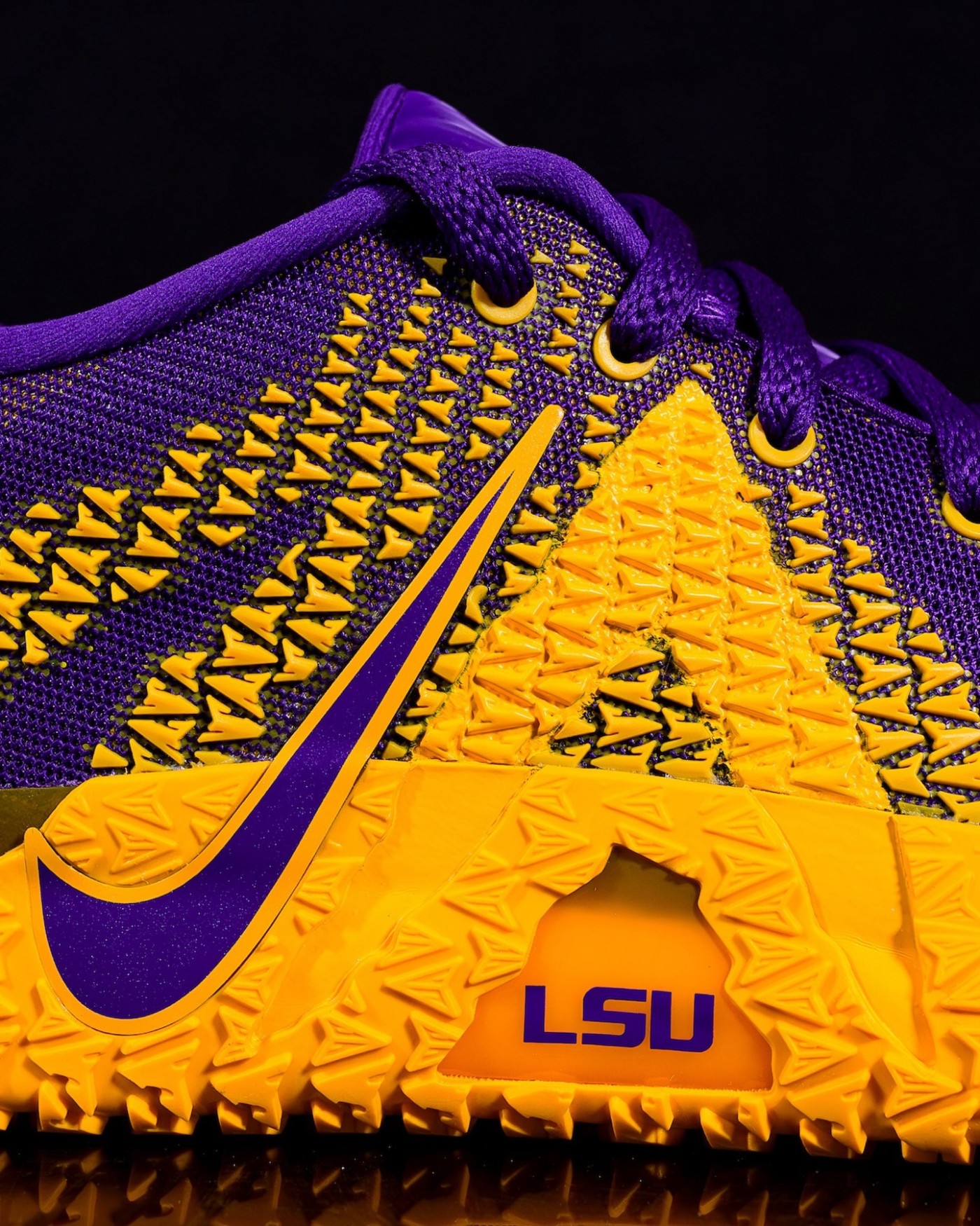 鞋身细节呈现了 LSU 字样,表明了它的 PE 专属身份。