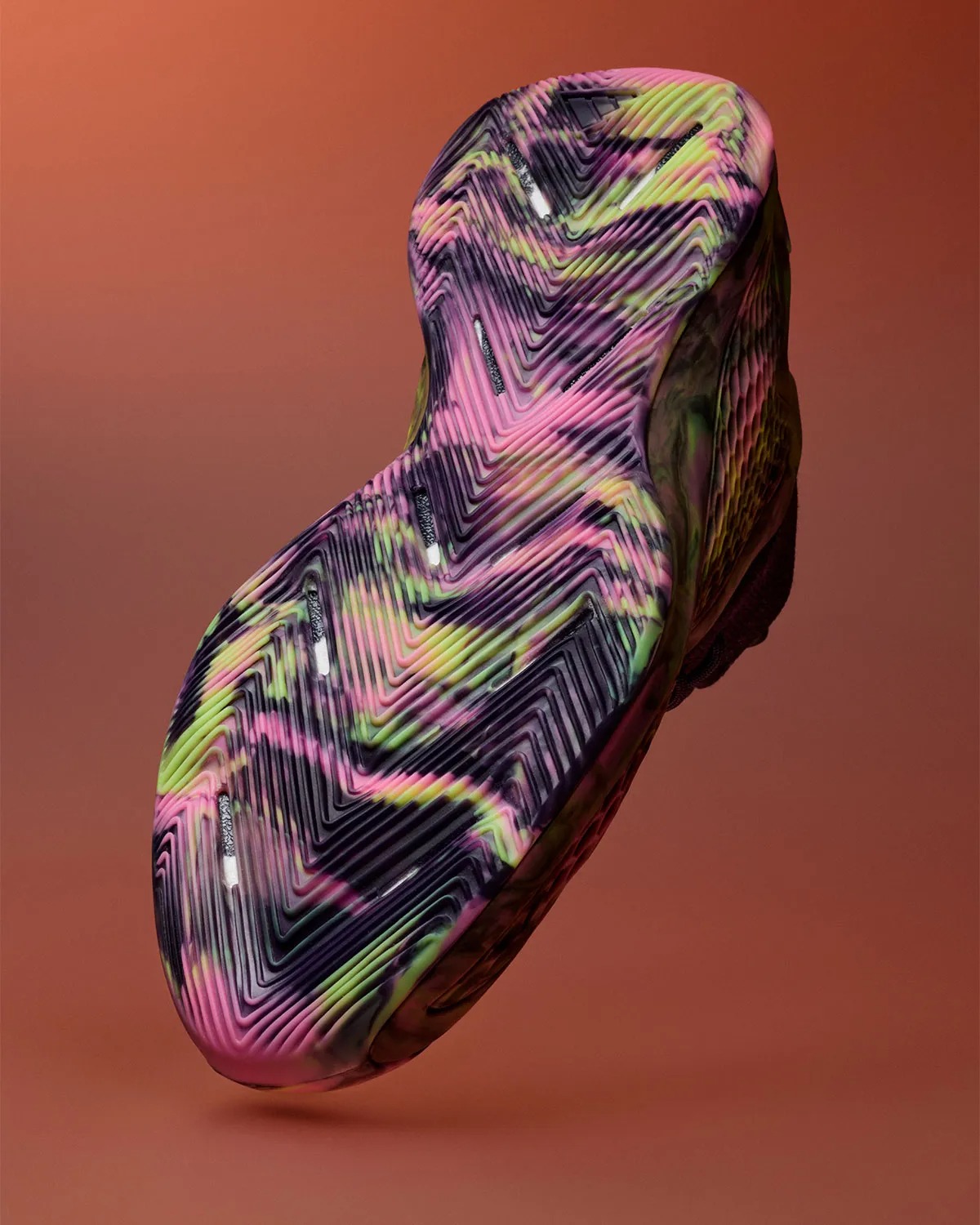 鞋面呈现了类似涡状大理石纹的视觉效果,这样的设计此前也有 AE1 Low 采用,甚至在侃爷的 YEEZY 洞洞鞋上也曾经呈现过相似的质感。