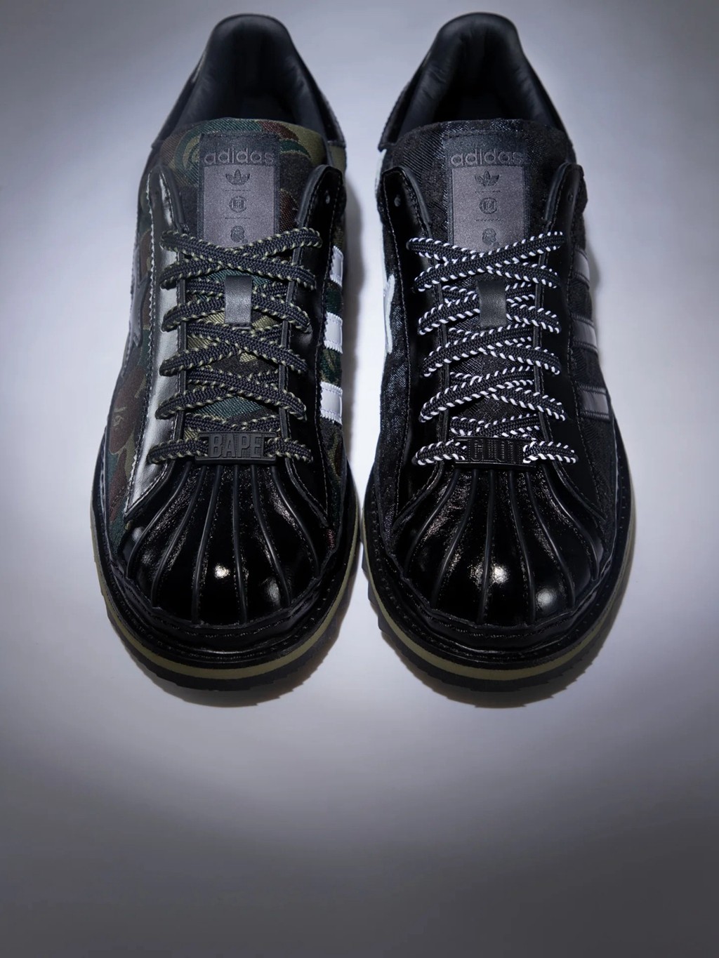 这次鞋型依旧是冠希拿手的 Superstar,融入各种 BAPE 元素。
