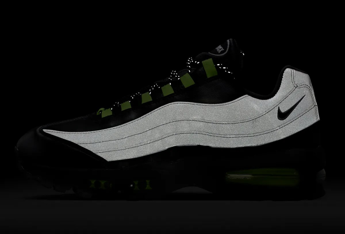 设计上沿用元年款 Big Bubble 缓震配置,配色方面致敬了最初于 1995 年发布的 Air Max 95 OG “Neon”,在 atmos 的操刀下,此次是 3M 反光鞋身呈现,辨识度相当高。