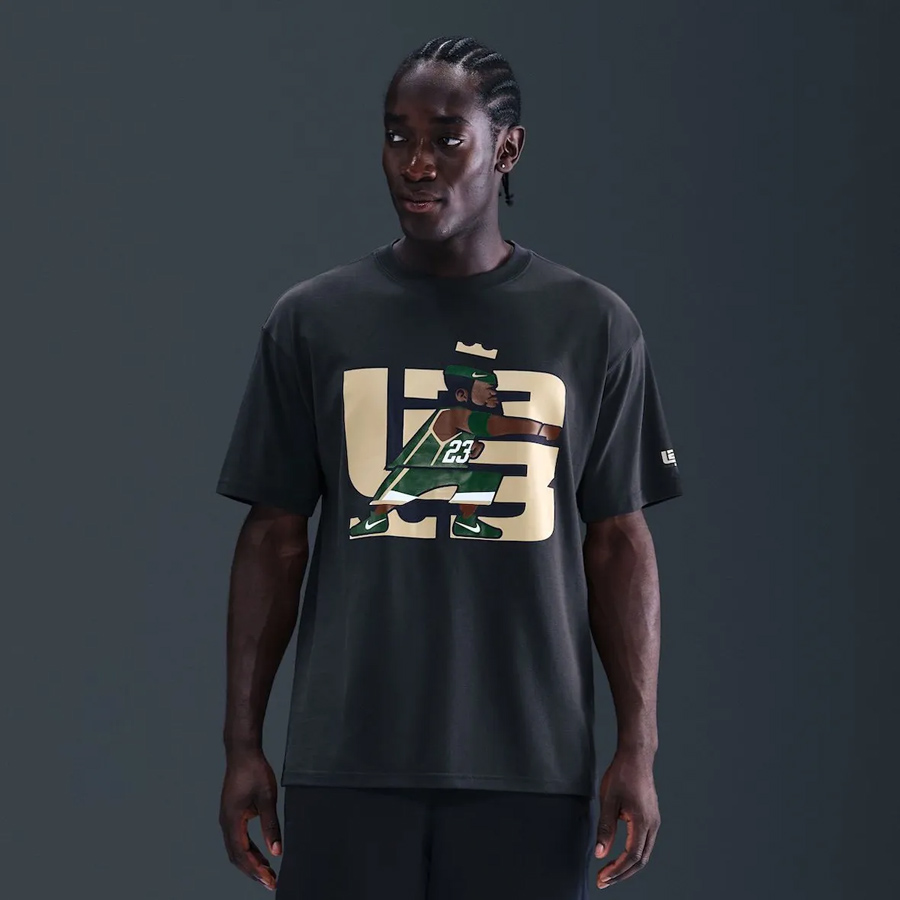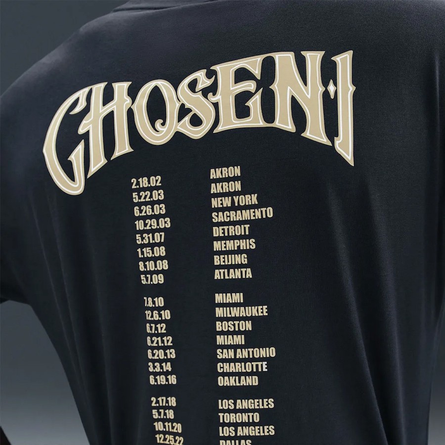 除此之外,呼应配色的主题 Tee 也一并曝光,采用早期詹姆斯的 Logo 示人。