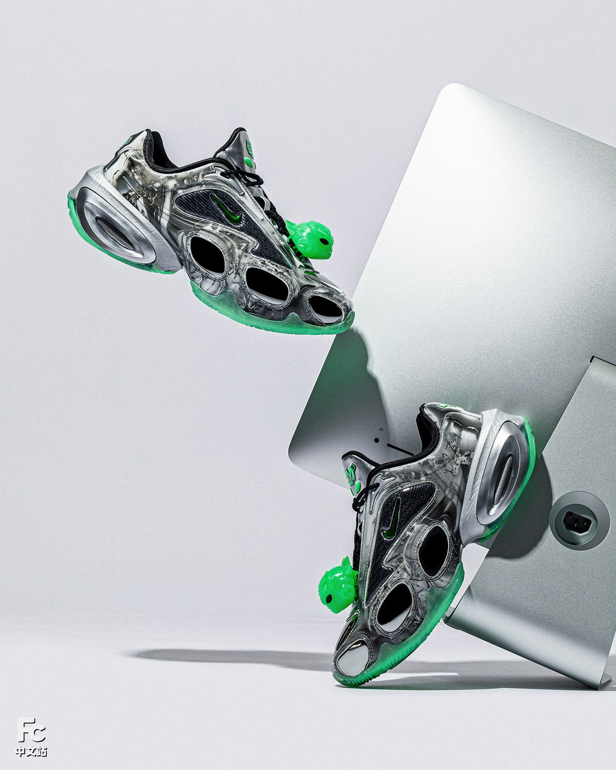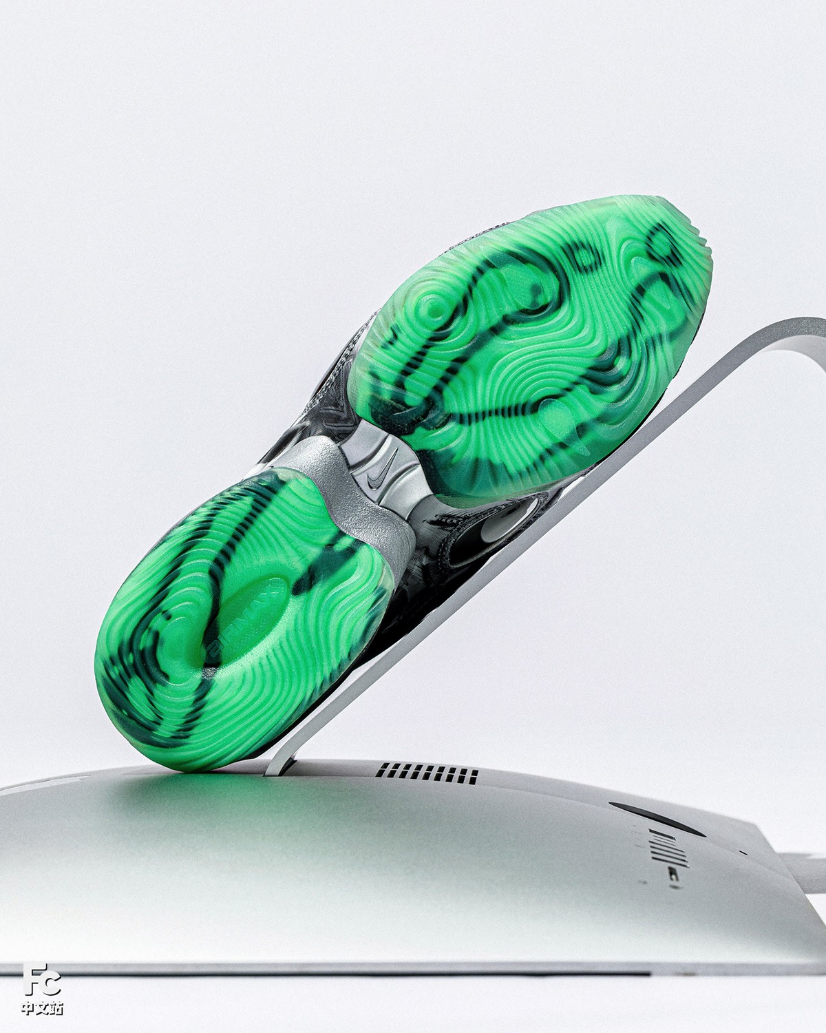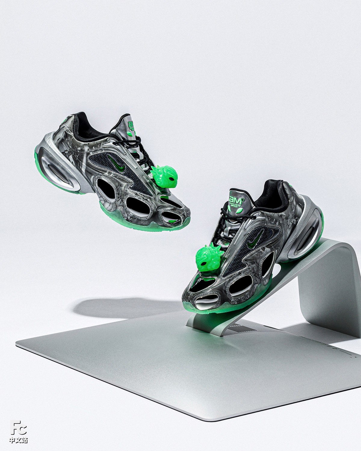 一共两款配色,一双以银色作为主线,搭配外星人绿,颇具未来科技氛围。