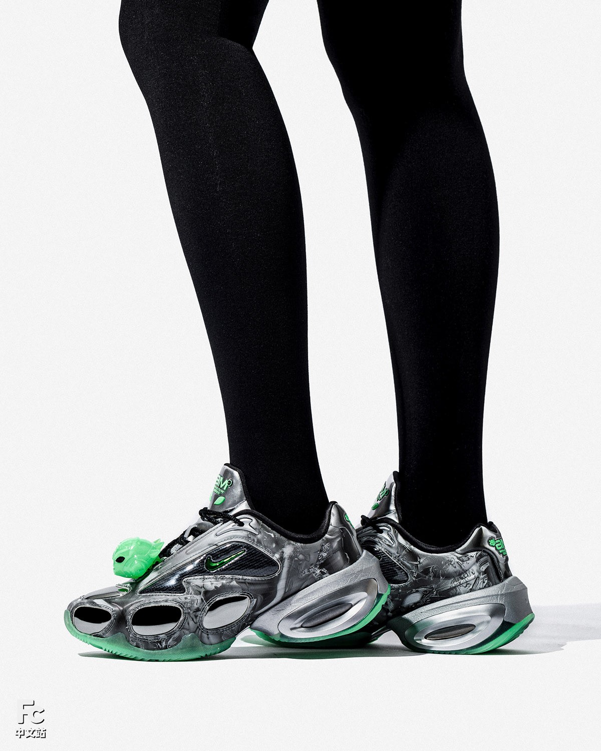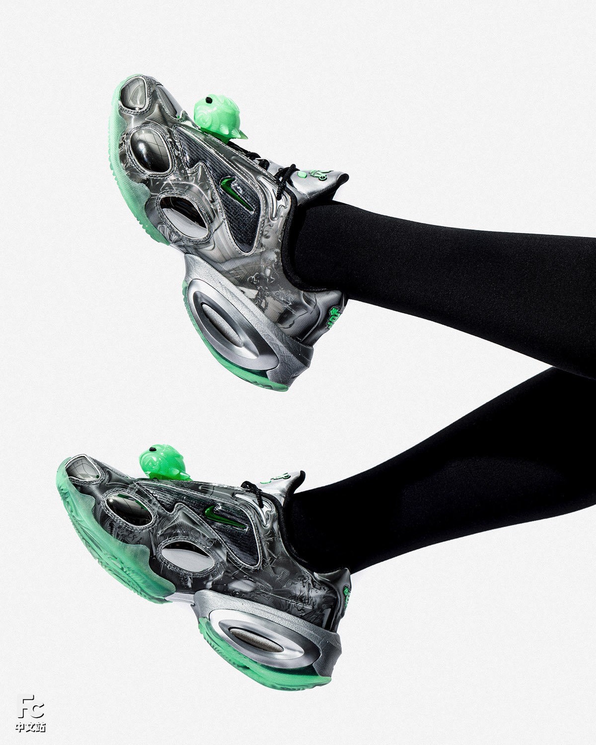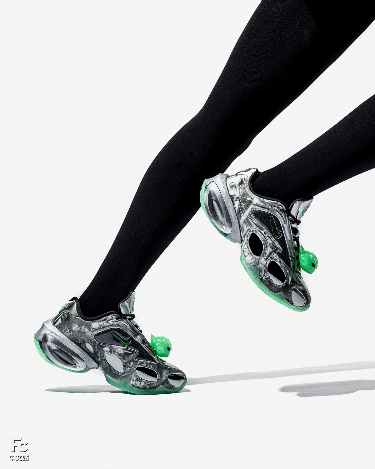 一共两款配色,一双以银色作为主线,搭配外星人绿,颇具未来科技氛围。