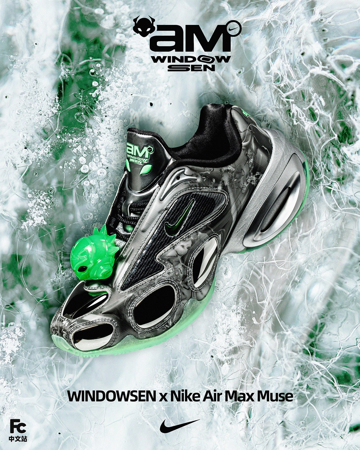 WINDOWSEN x Nike Air Max Muse 无疑是一次大胆的时尚创新,Sensen Lii 对于科幻文化的痴迷,以及细腻娴熟的设计手法都让人印象深刻。
