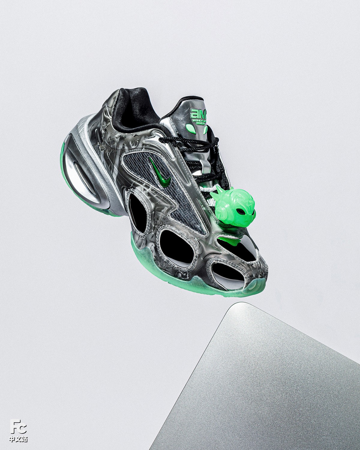 这双 WINDOWSEN x Nike Air Max Muse 有着外星科幻大片的既视感,通过极为复杂工艺组合,呈现了让人眼花缭乱的科幻景象。
