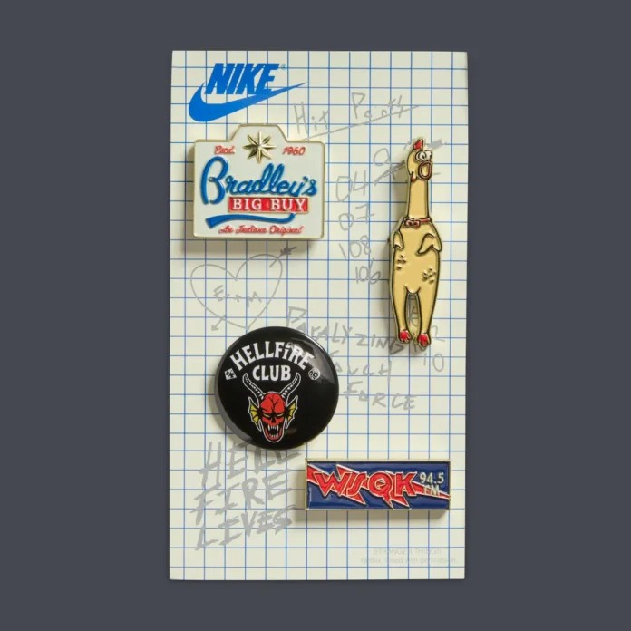 鞋身元素上下翻转,呼应了剧中 “颠倒世界” 的平行时空,Nike 1987 徽章,暗示了第五季的时间线。
