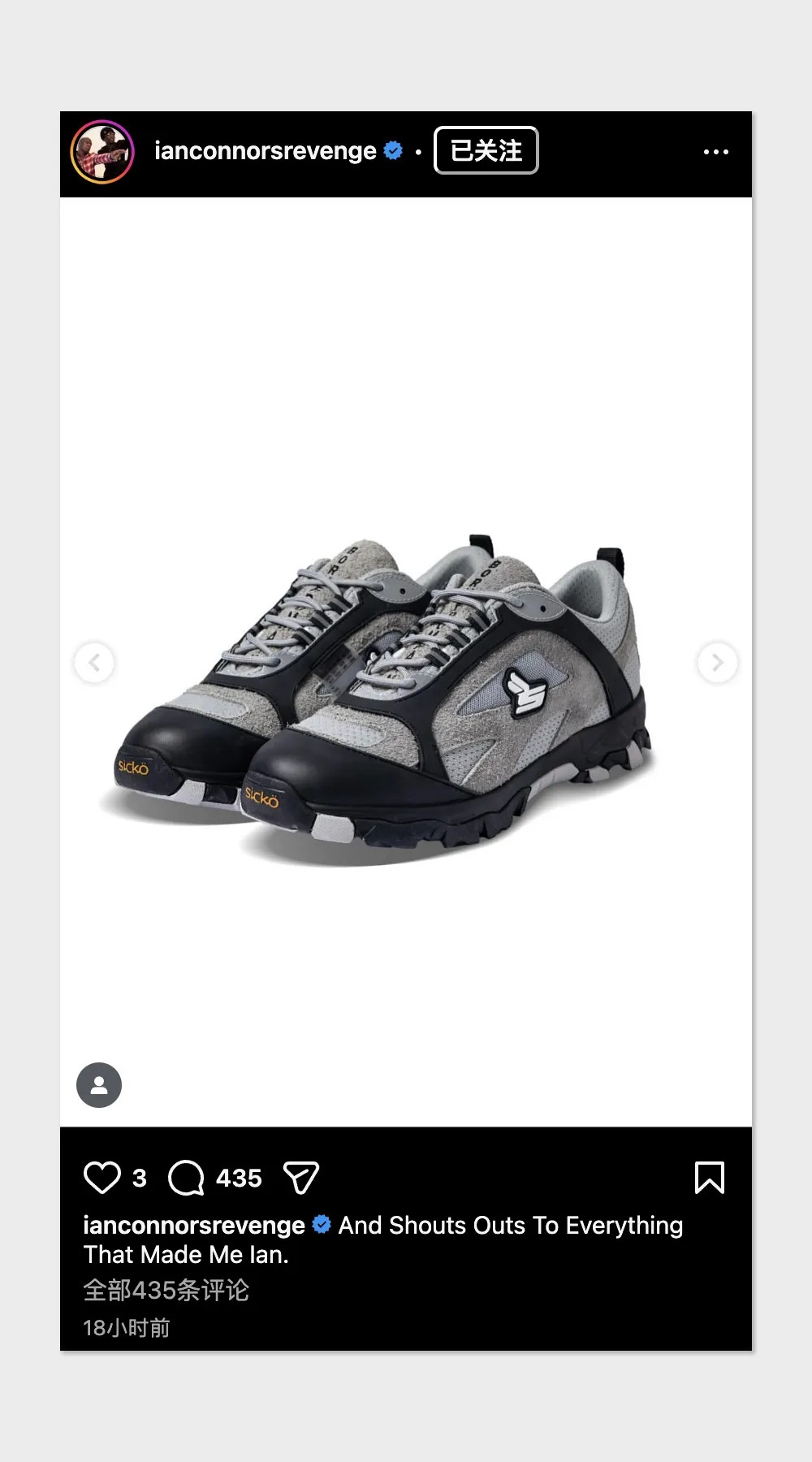 sicko 的正式发布是在 10 月份的 ComplexCon 拉斯维加斯展,Ian Connor 也通过社交网络传递了这双鞋的设计理念。