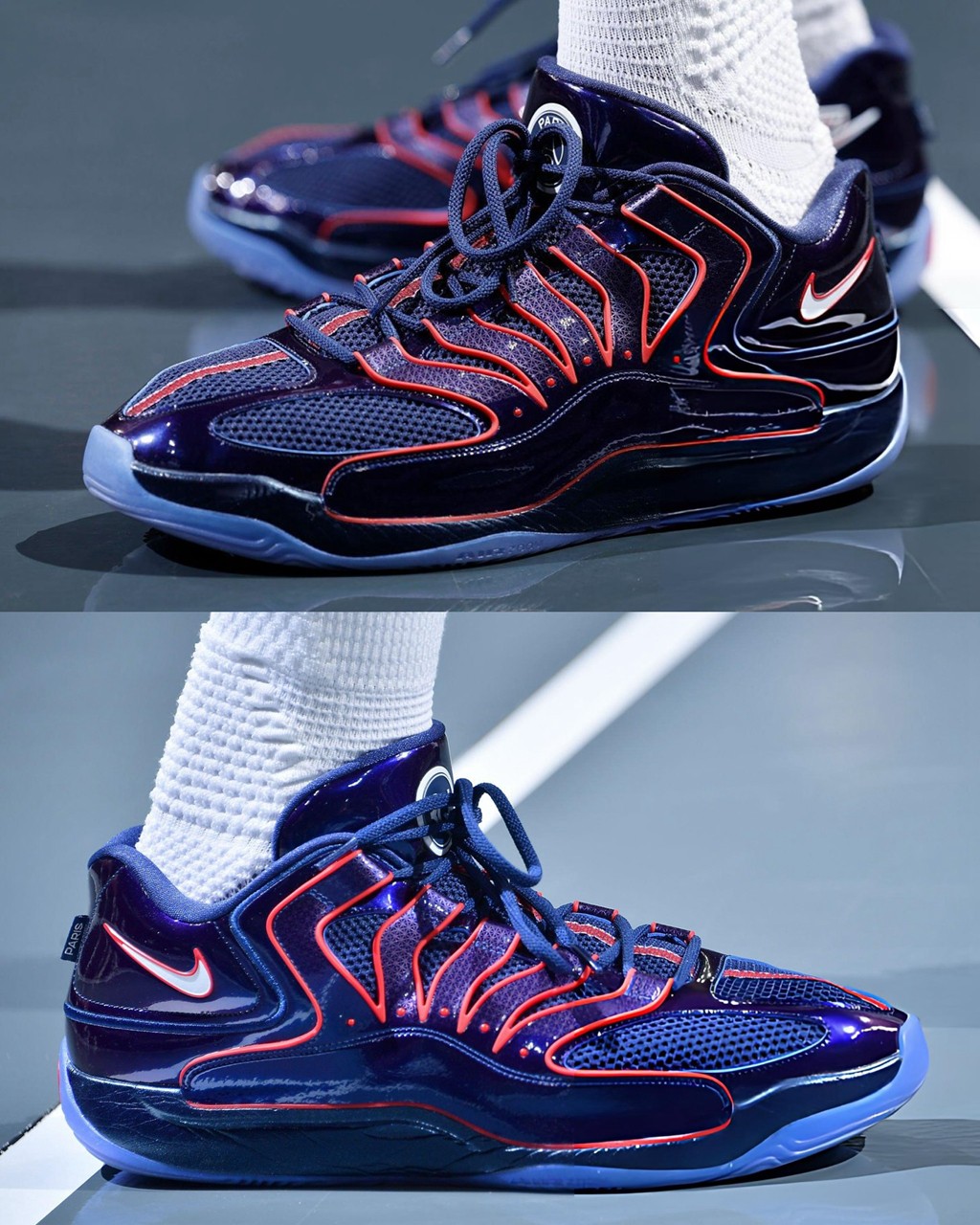 但这双 PE 也有竞争对手,比如杜兰特近期上脚的 PSG x Nike KD18。