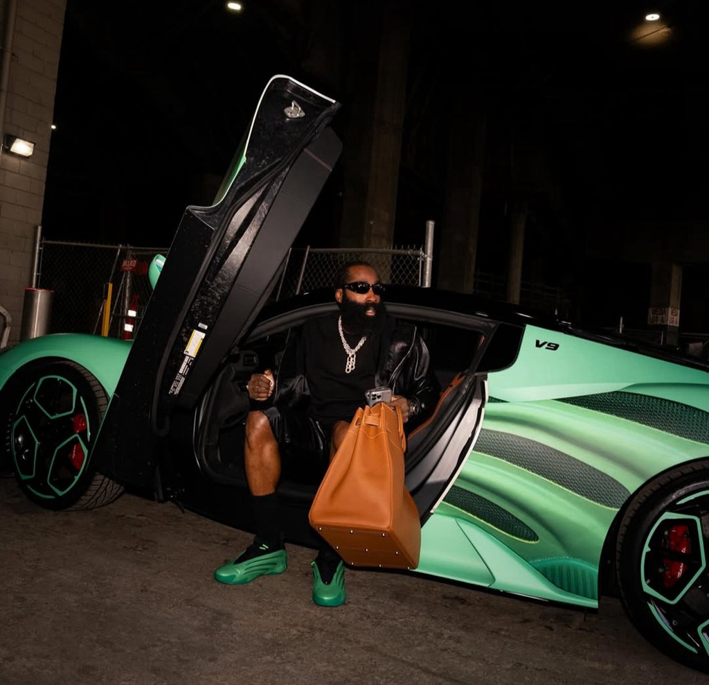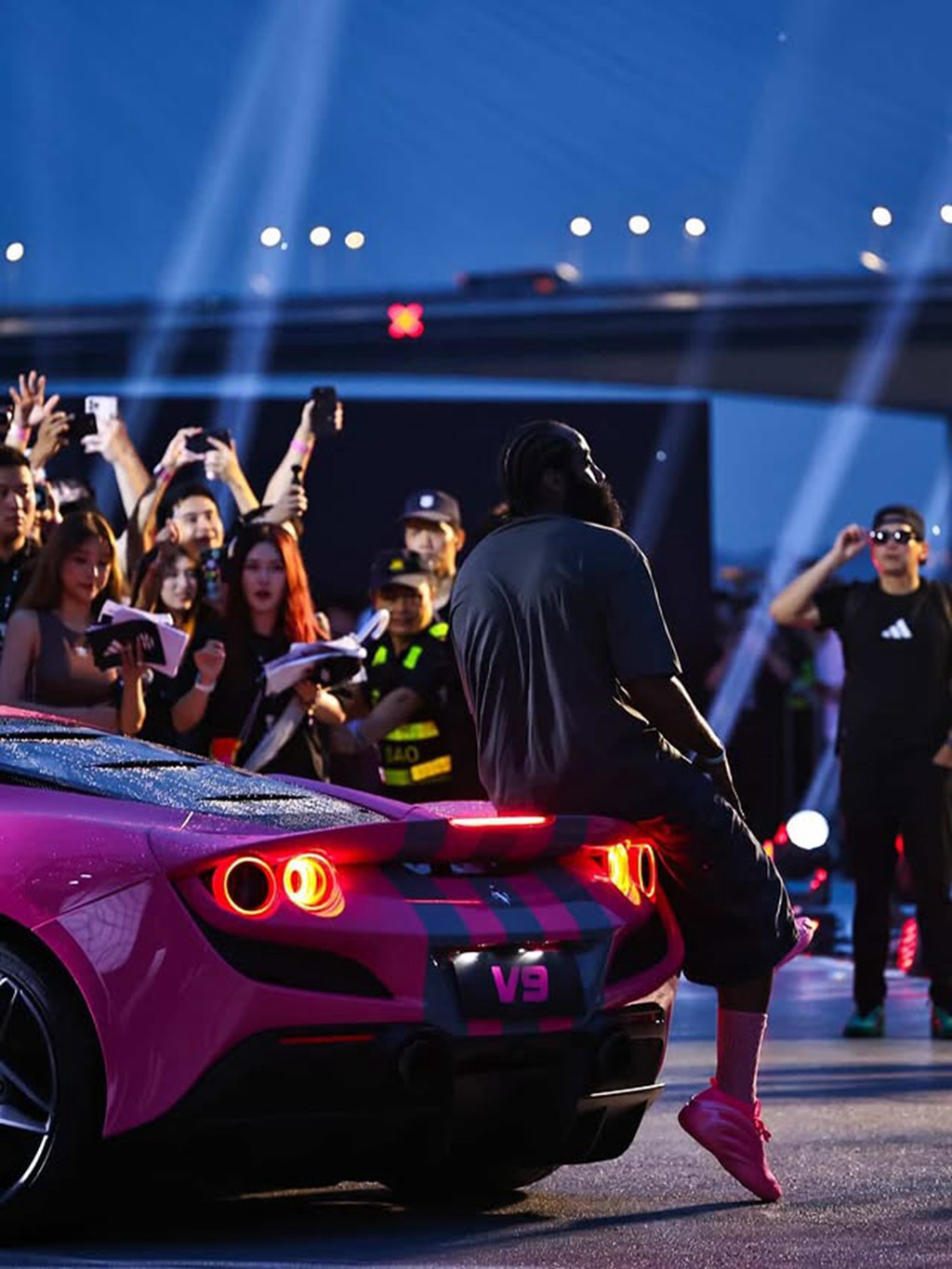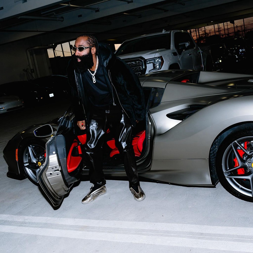 前不久,哈登为了宣传一双新配色,不惜祭出自己的法拉利,来了波 “鞋车一体”。
