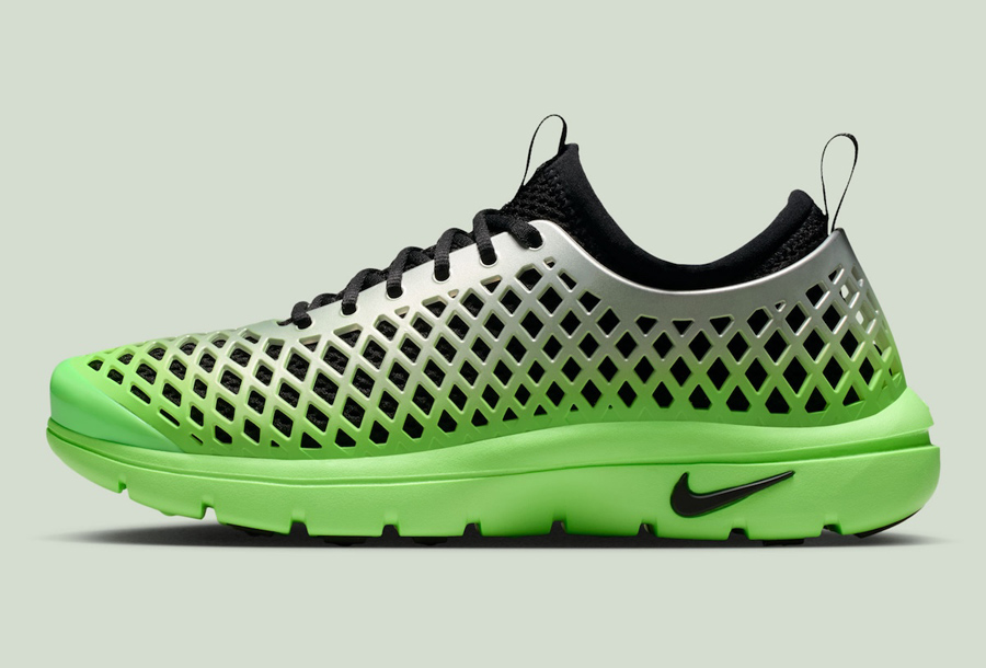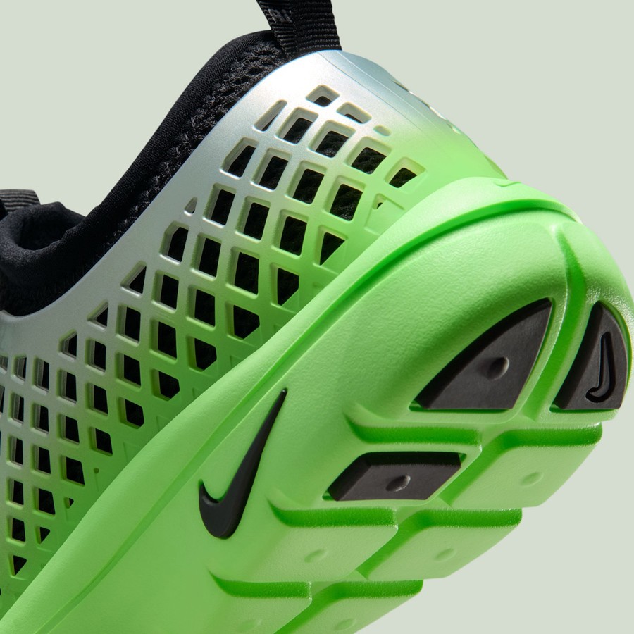 如今阔别 18 年终于迎来复刻回归,不仅带回原汁原味的鞋面结构,兼顾轻量化、透气性与内靴的舒适包裹,配色也非常讨喜,既有百搭耐看的哑光黑,也有更具活力的绿银渐变。