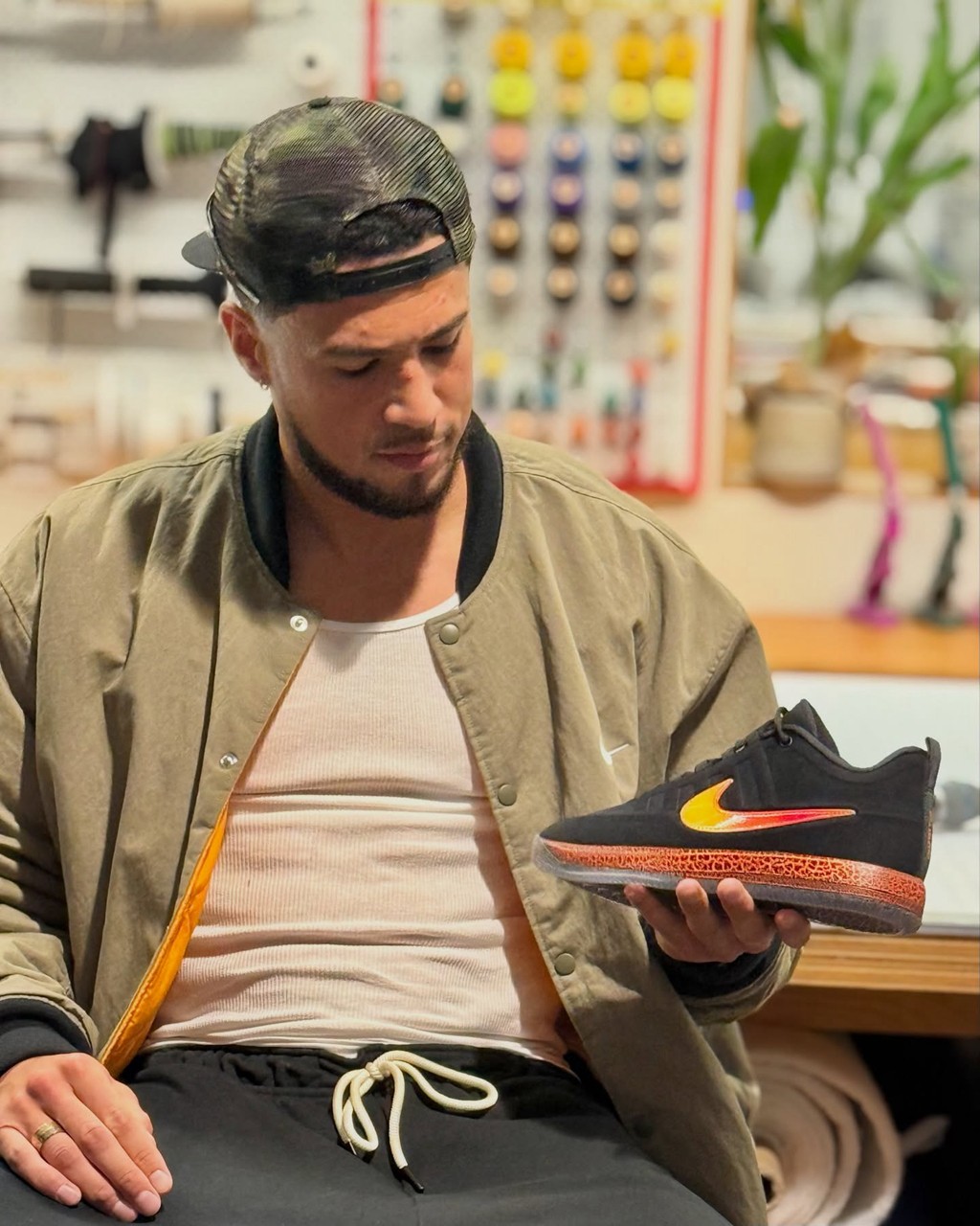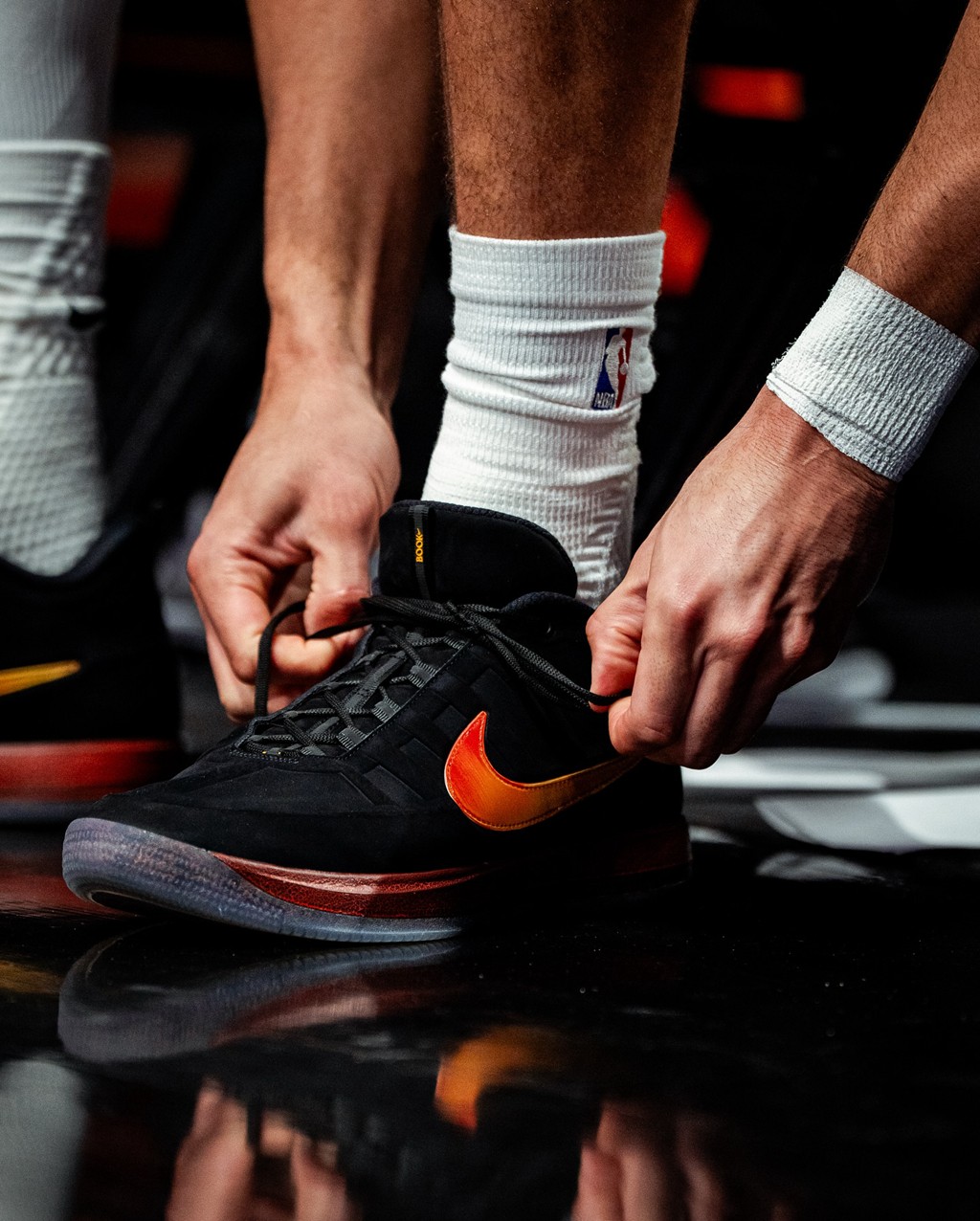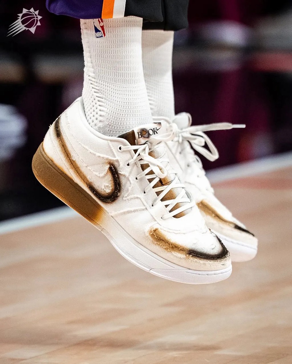 另外,为了给 Book 1 画上个圆满的句号,布克还在比赛中上脚了一双 “焚烧版” Book 1。