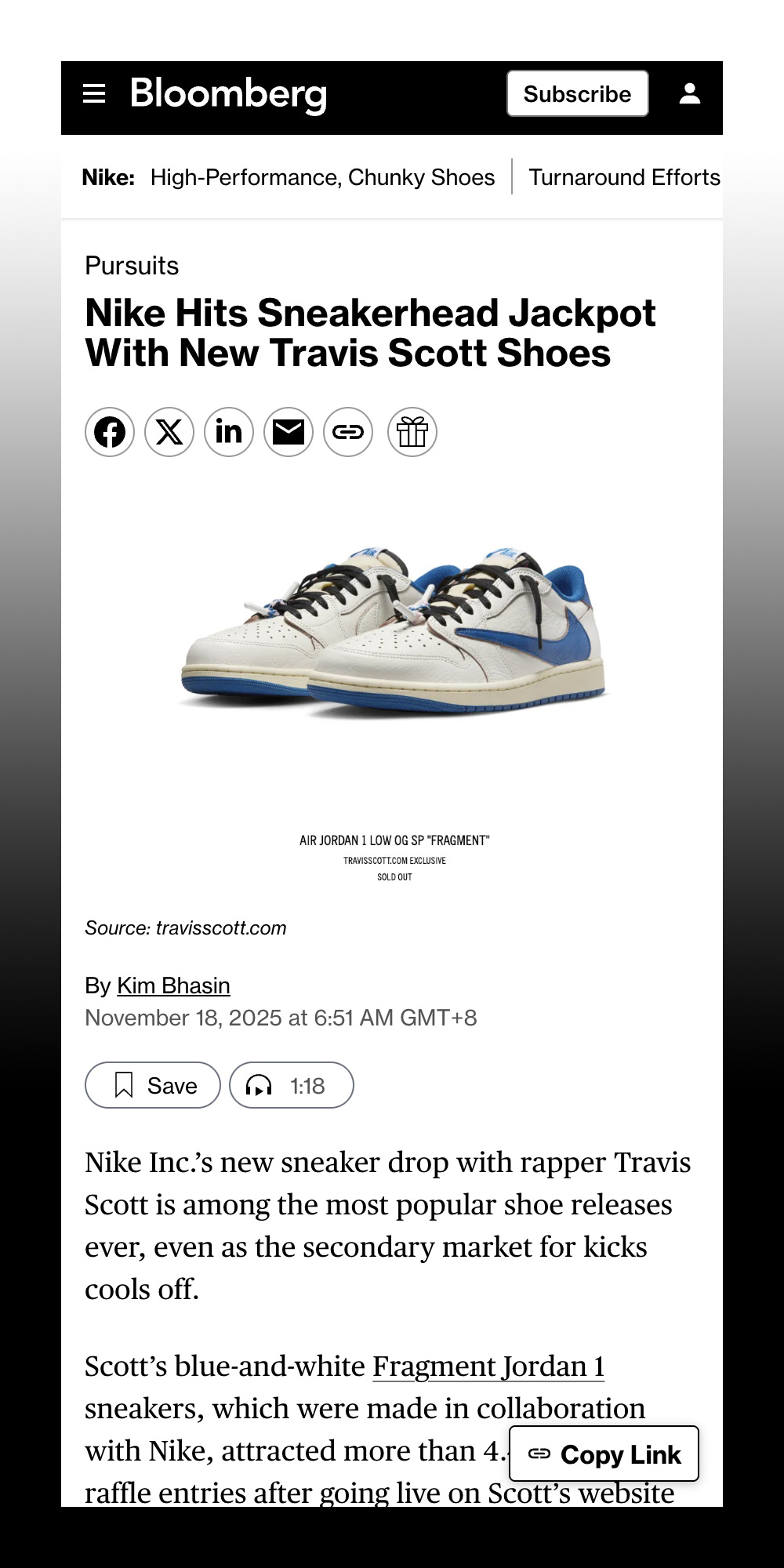 Travis Scott 携手藤原浩和 Nike,打造的这双「闪电倒钩 2.0」也成为了本周全球财经媒体的关注焦点。