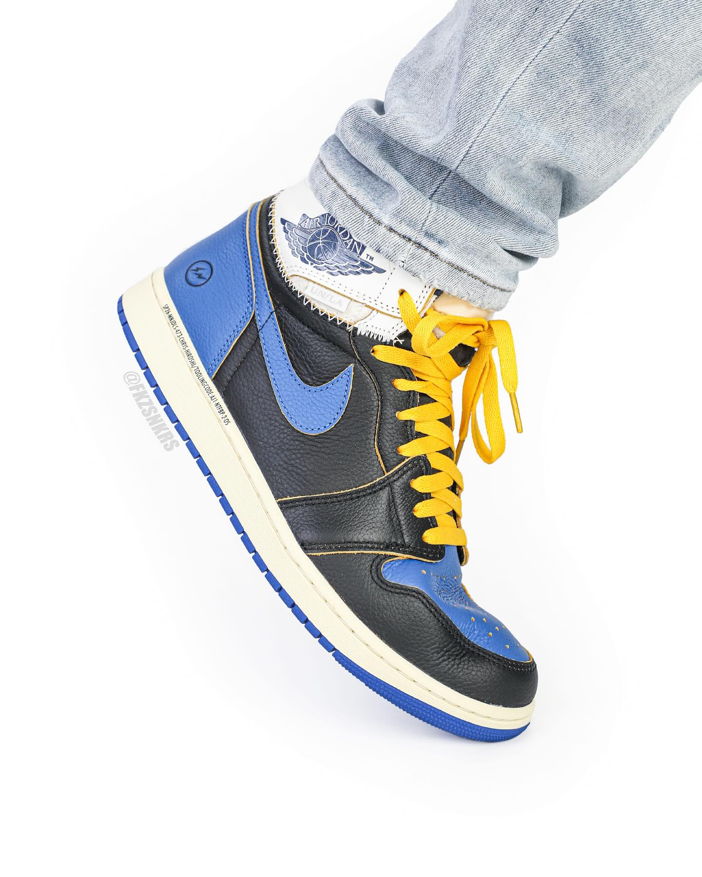 其中货量仅有 15000 双的黑蓝 fragment design x Union x Air Jordan 1 最近释出一组新实物。