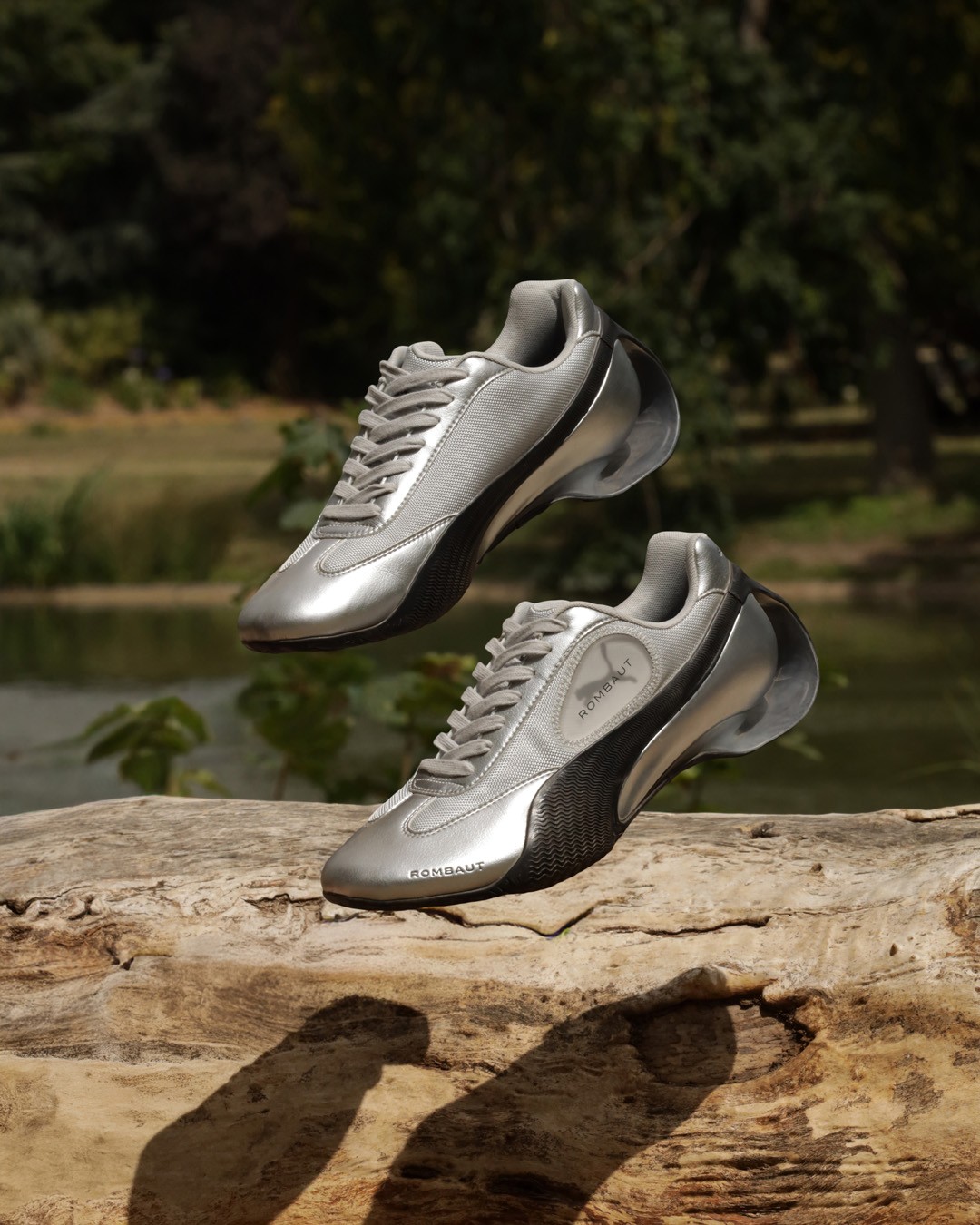 鞋身采用科技感银灰色网面与人造皮革打造,饰以 ROMBAUT 标志性的细胞气泡细节。