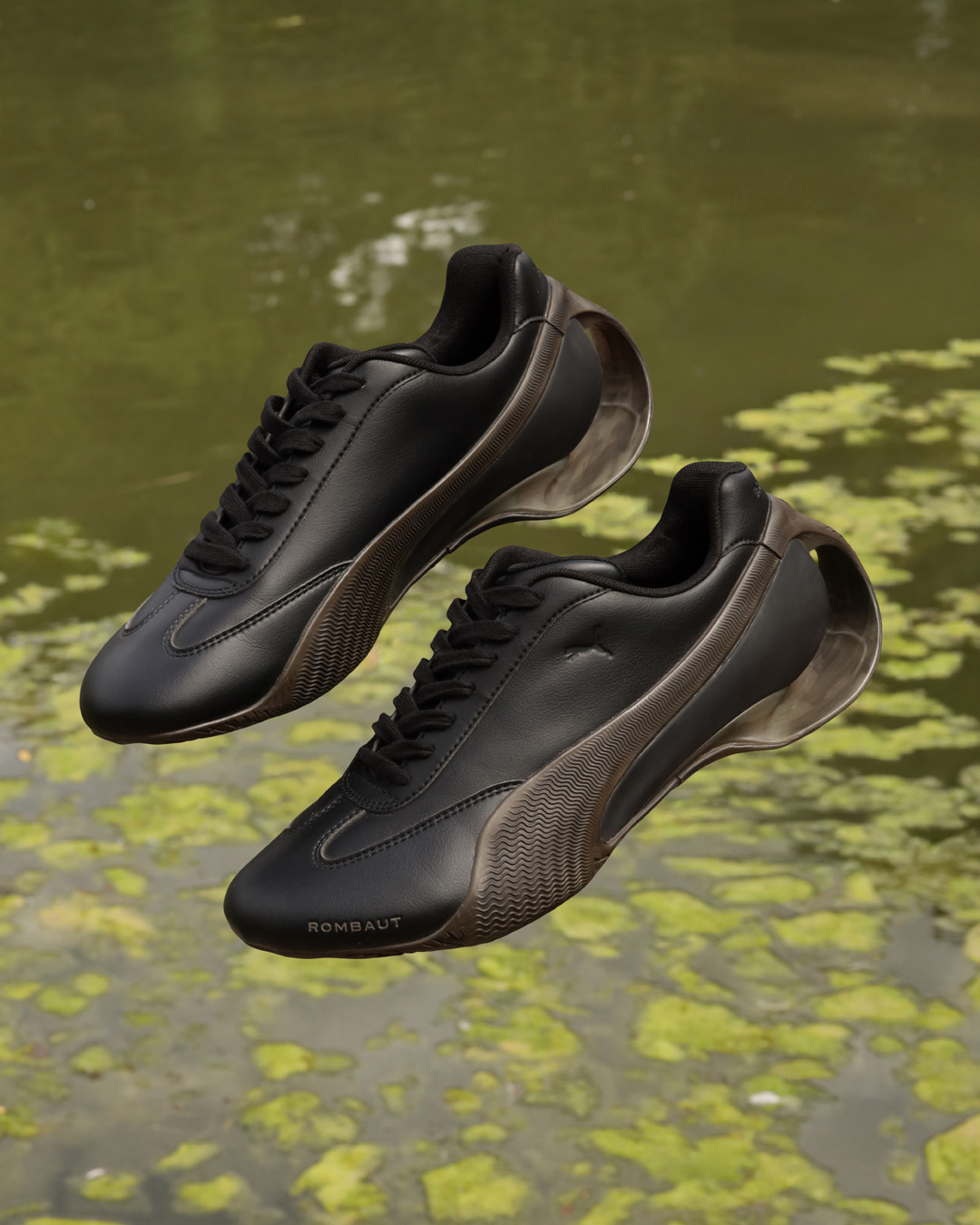 全新 PUMA × ROMBAUT 联名鞋款,其鞋面设计承袭了 PUMA 标志性的 Speedcat 鞋型,融入空气动力学曲线与 ROMBAUT 的设计美学。