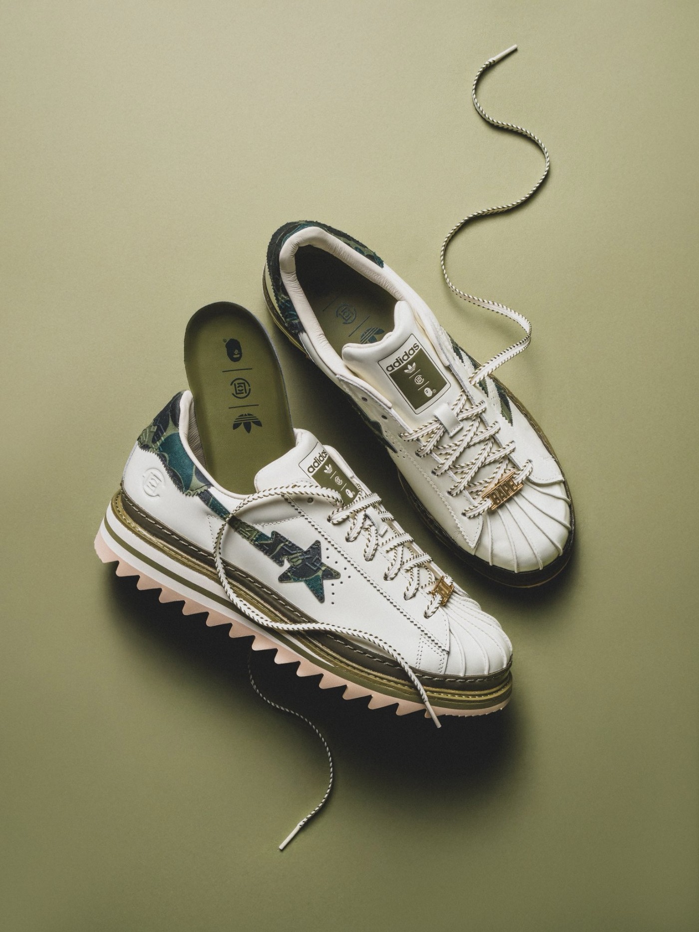 BAPE 同 Superstar 贝壳头也一直有联名合作,每次都有很高的关注度,这次将双方联名的部分设计加入到了 CLOT x Superstar 中,带来更加丰富的视觉体验。