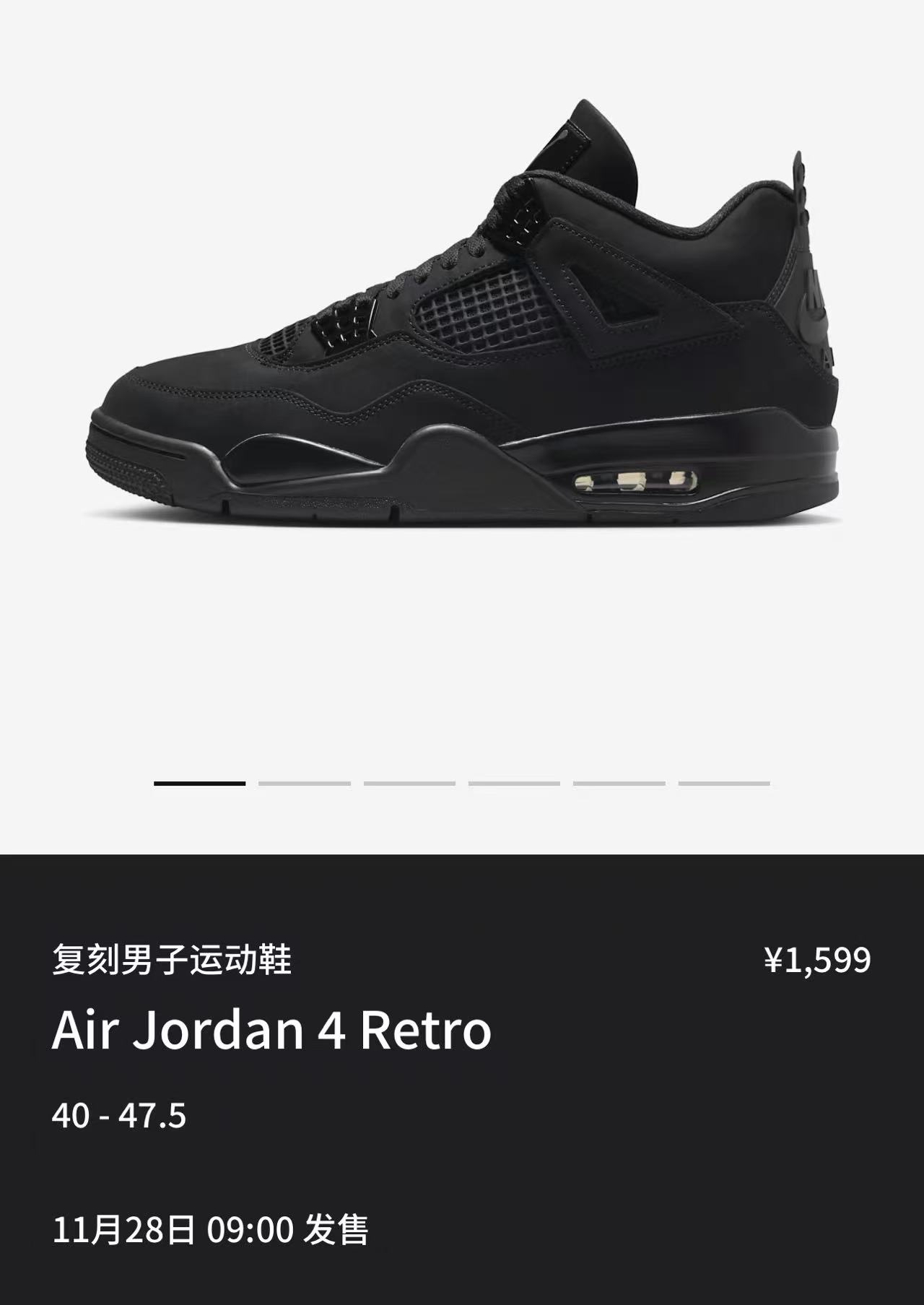 最初于 2006 年发布的黑猫 Air Jordan 4 “Black Cat” 明早正式通过 SNKRS 登场。