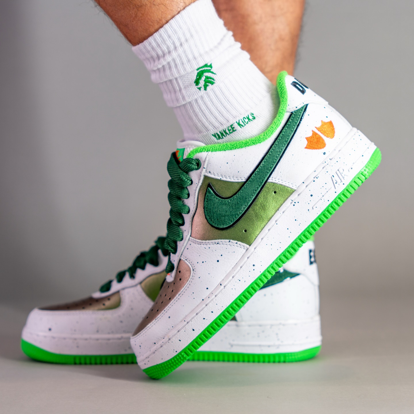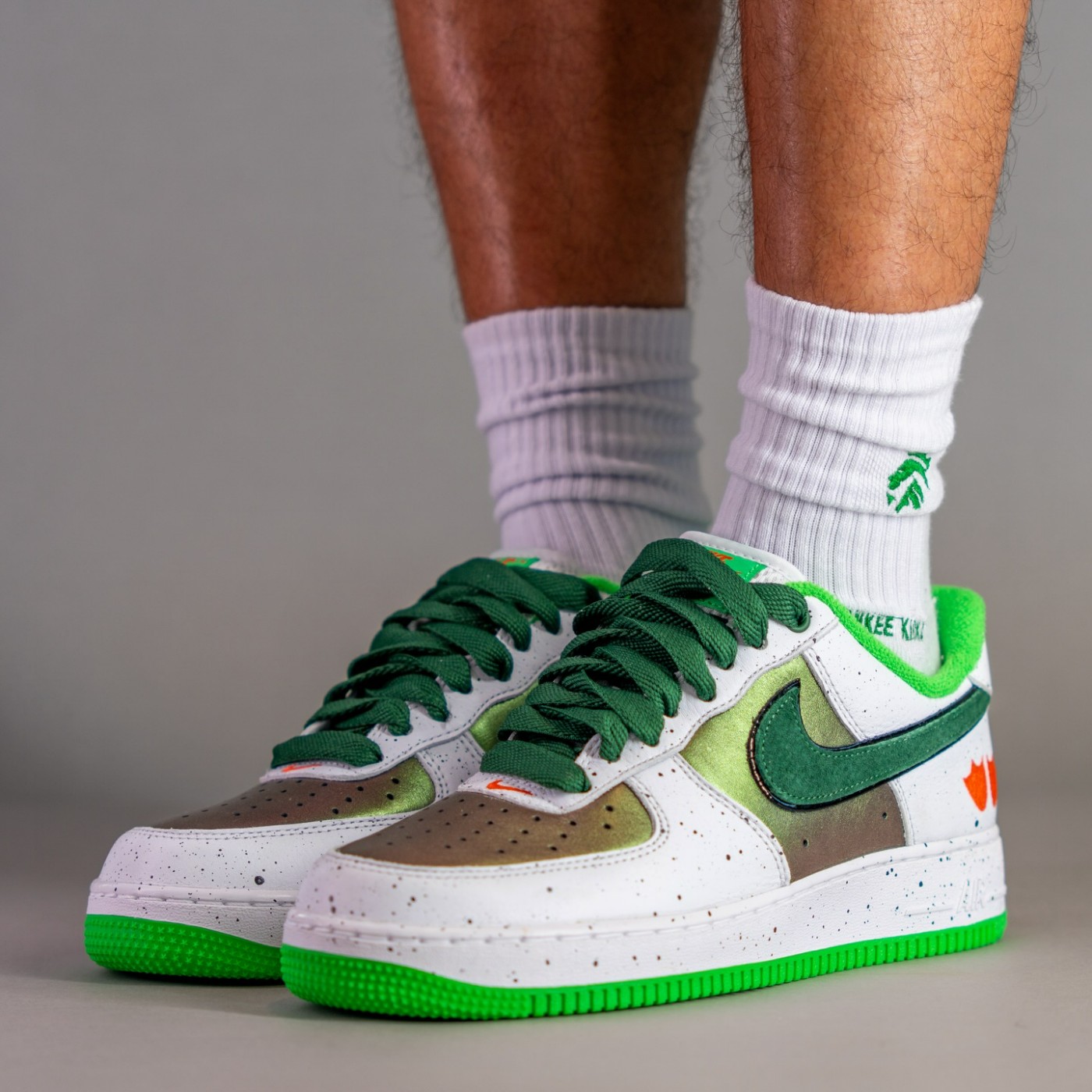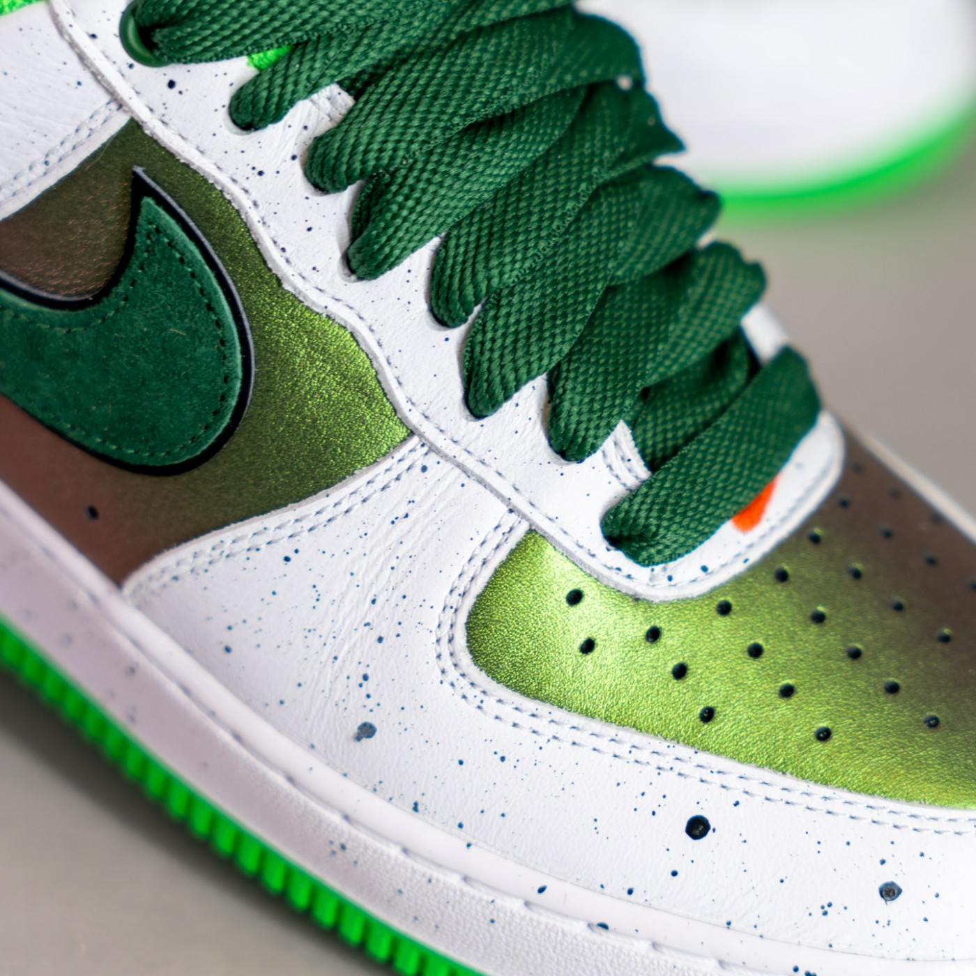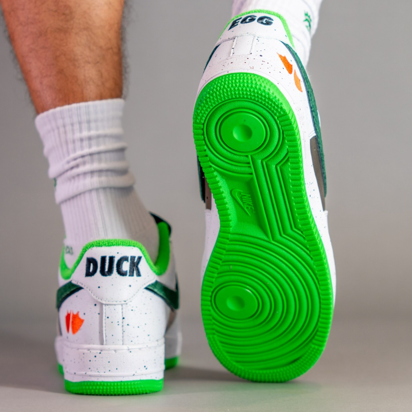 配色上模仿野鸭的外观,鞋面使用绿色珠光色呈现,搭配毛巾面料内衬,赋予 Air Force 1 全新感受。