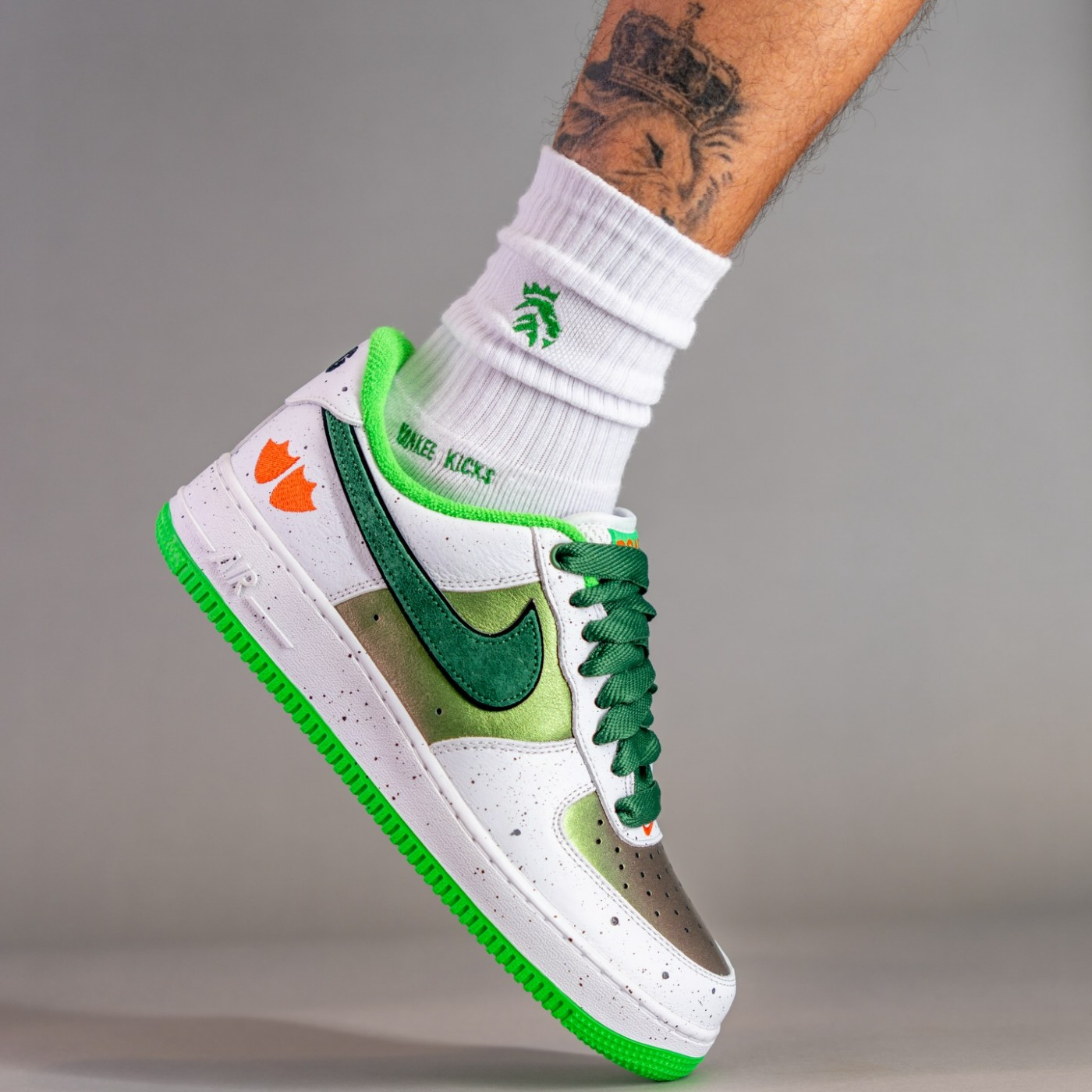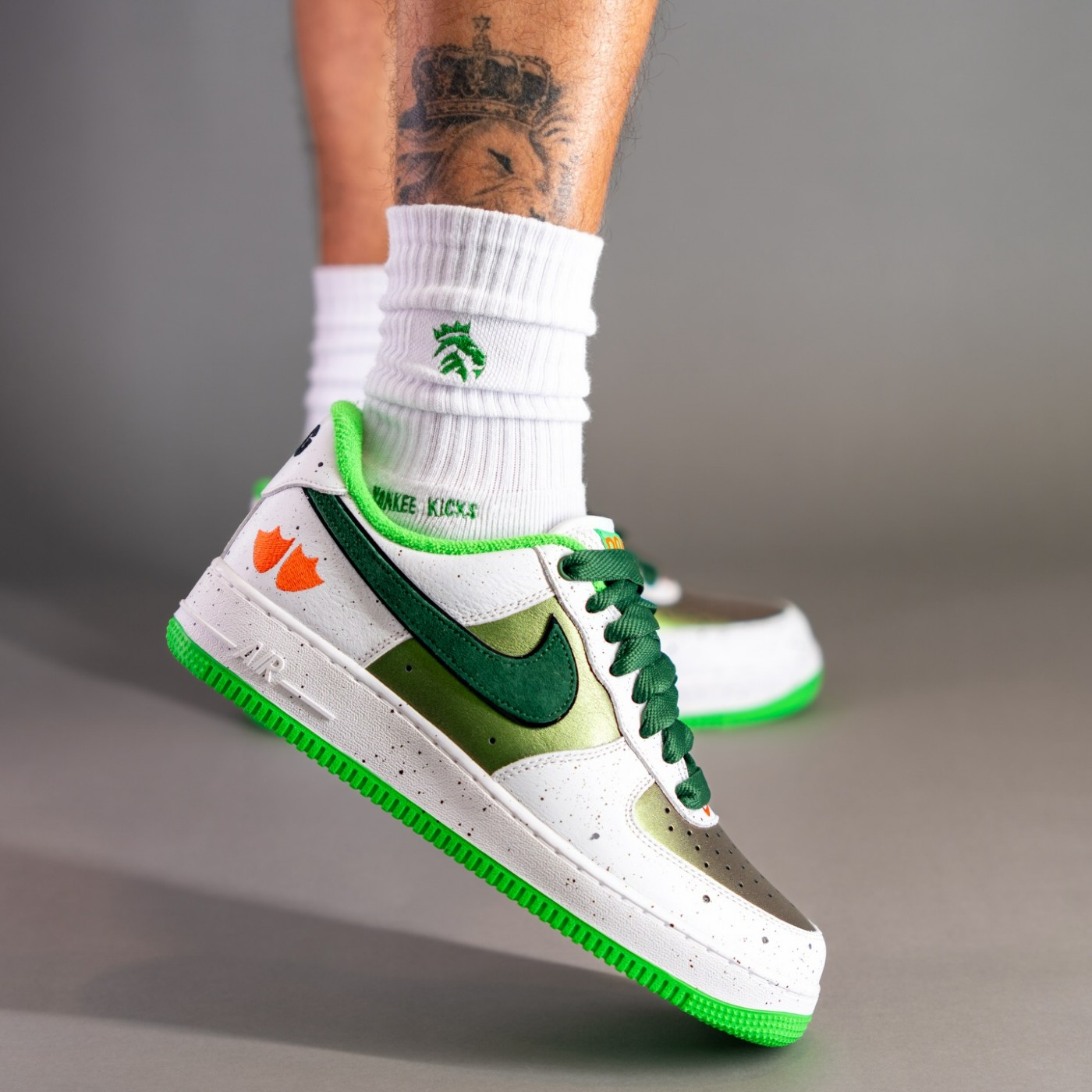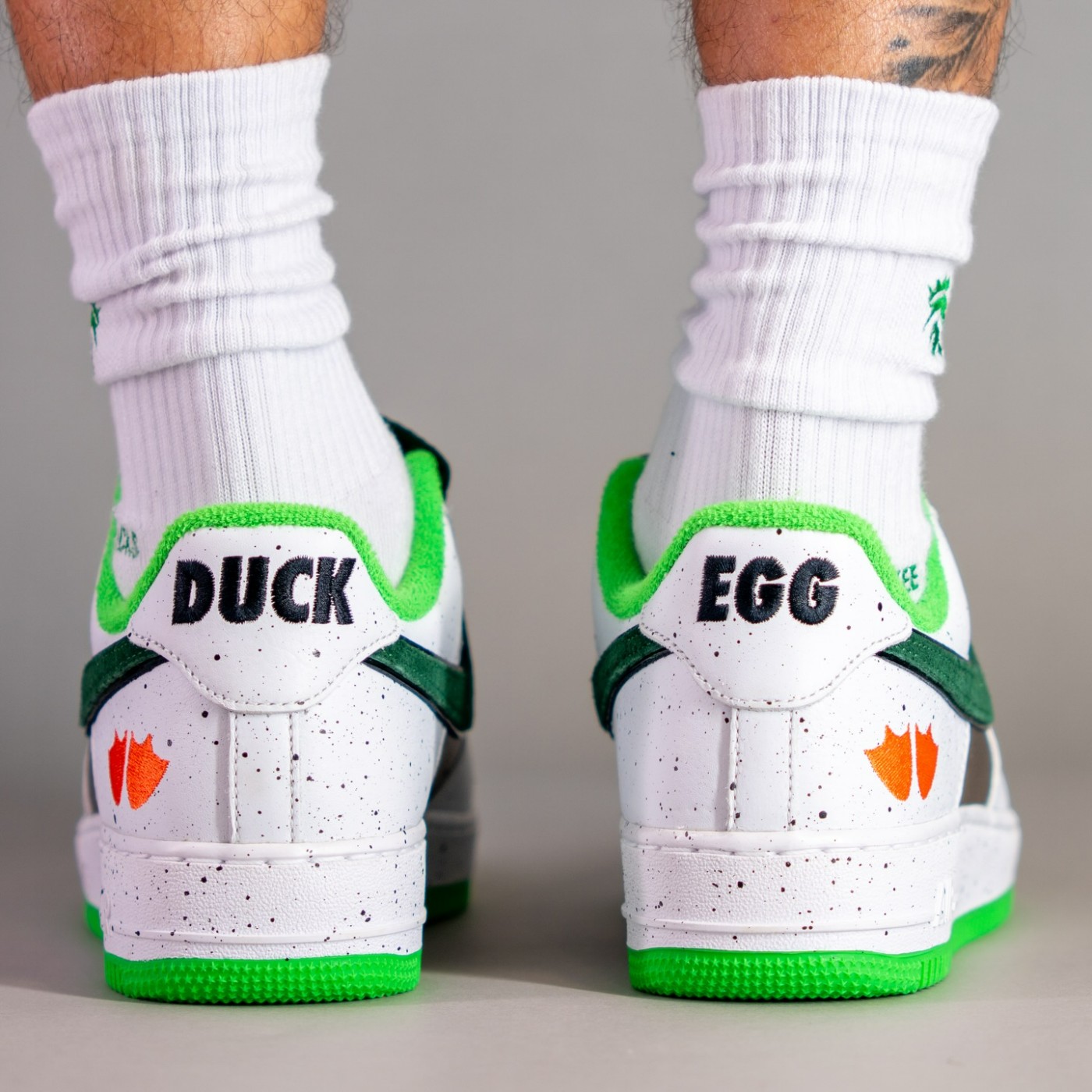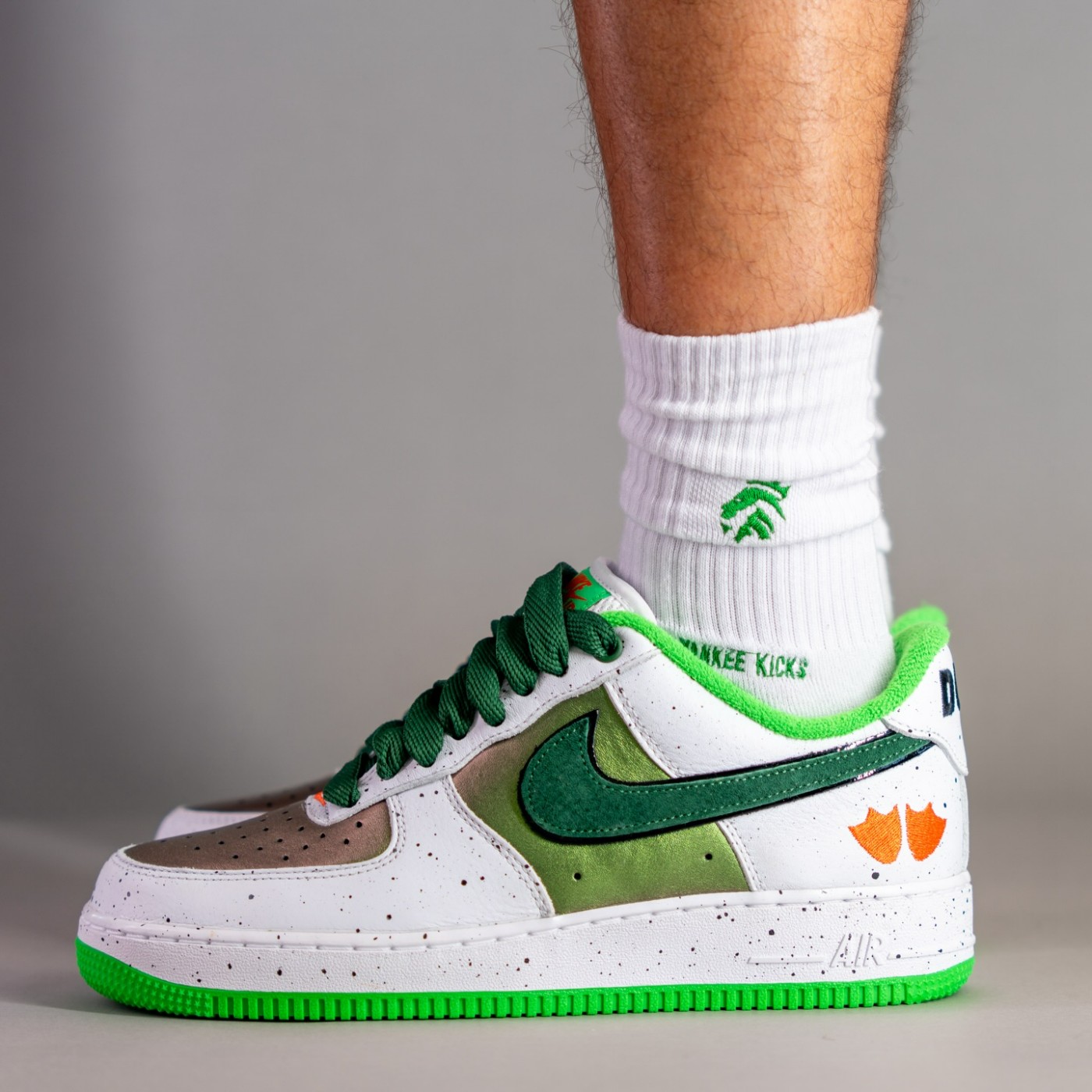 配色上模仿野鸭的外观,鞋面使用绿色珠光色呈现,搭配毛巾面料内衬,赋予 Air Force 1 全新感受。