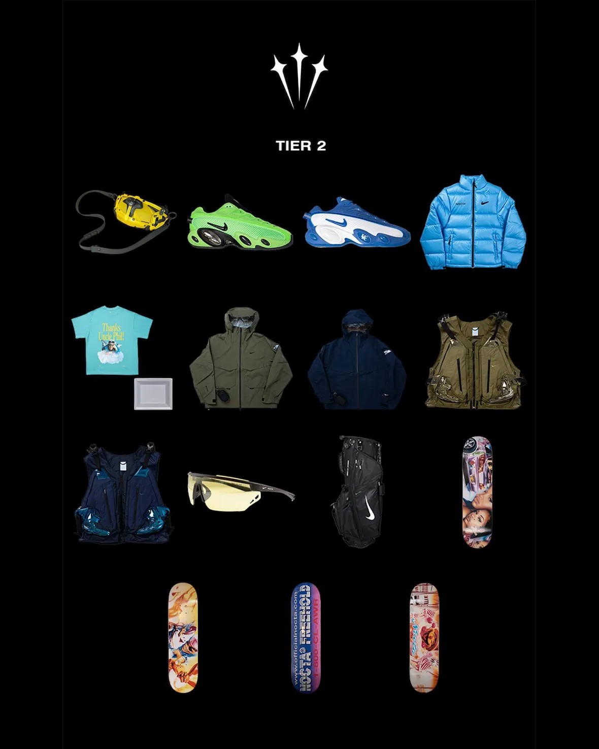第二等级限量 300 件,包含专属的亲友特供商品,例如滑板,甚至还有高尔夫球包。